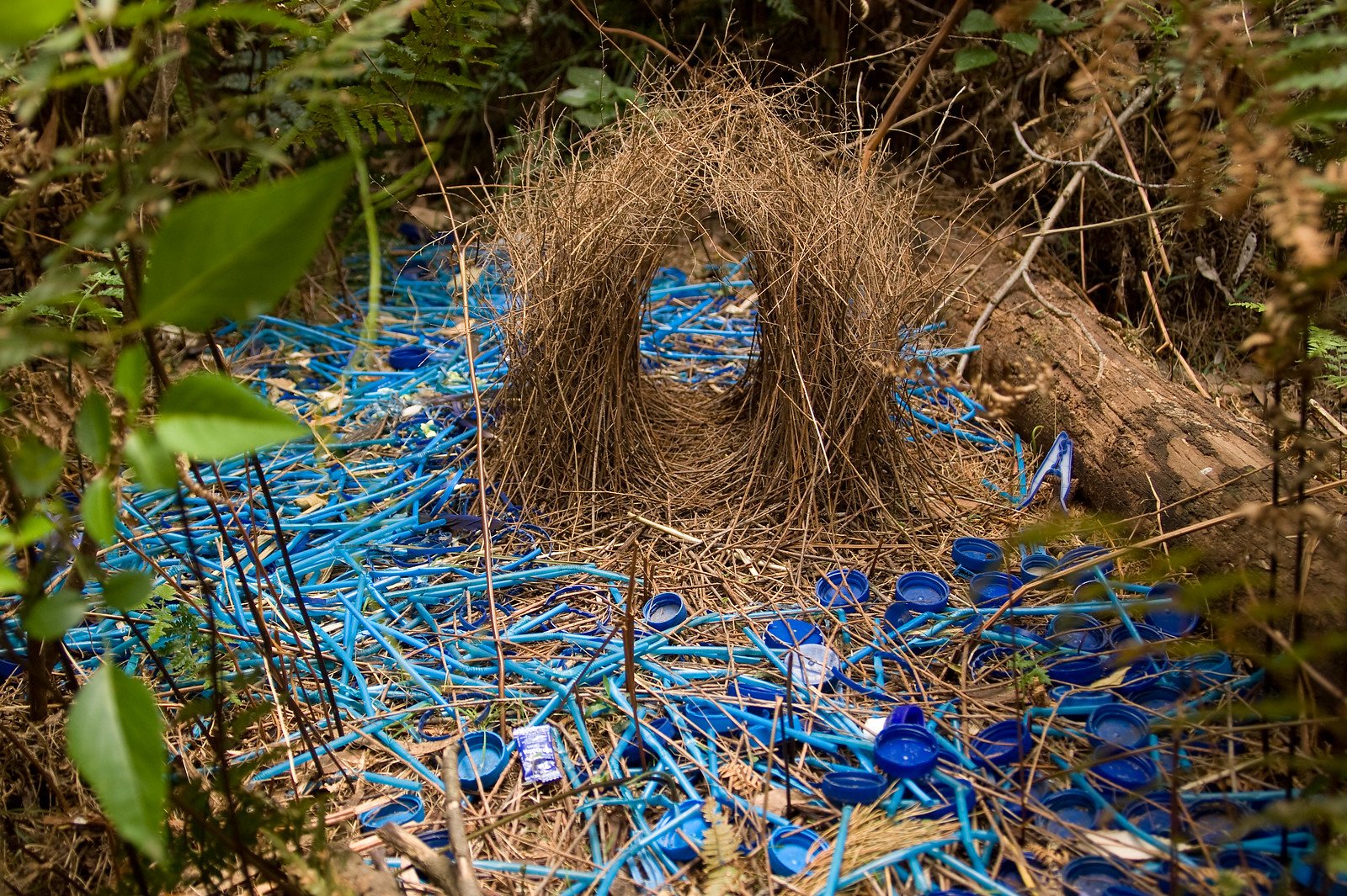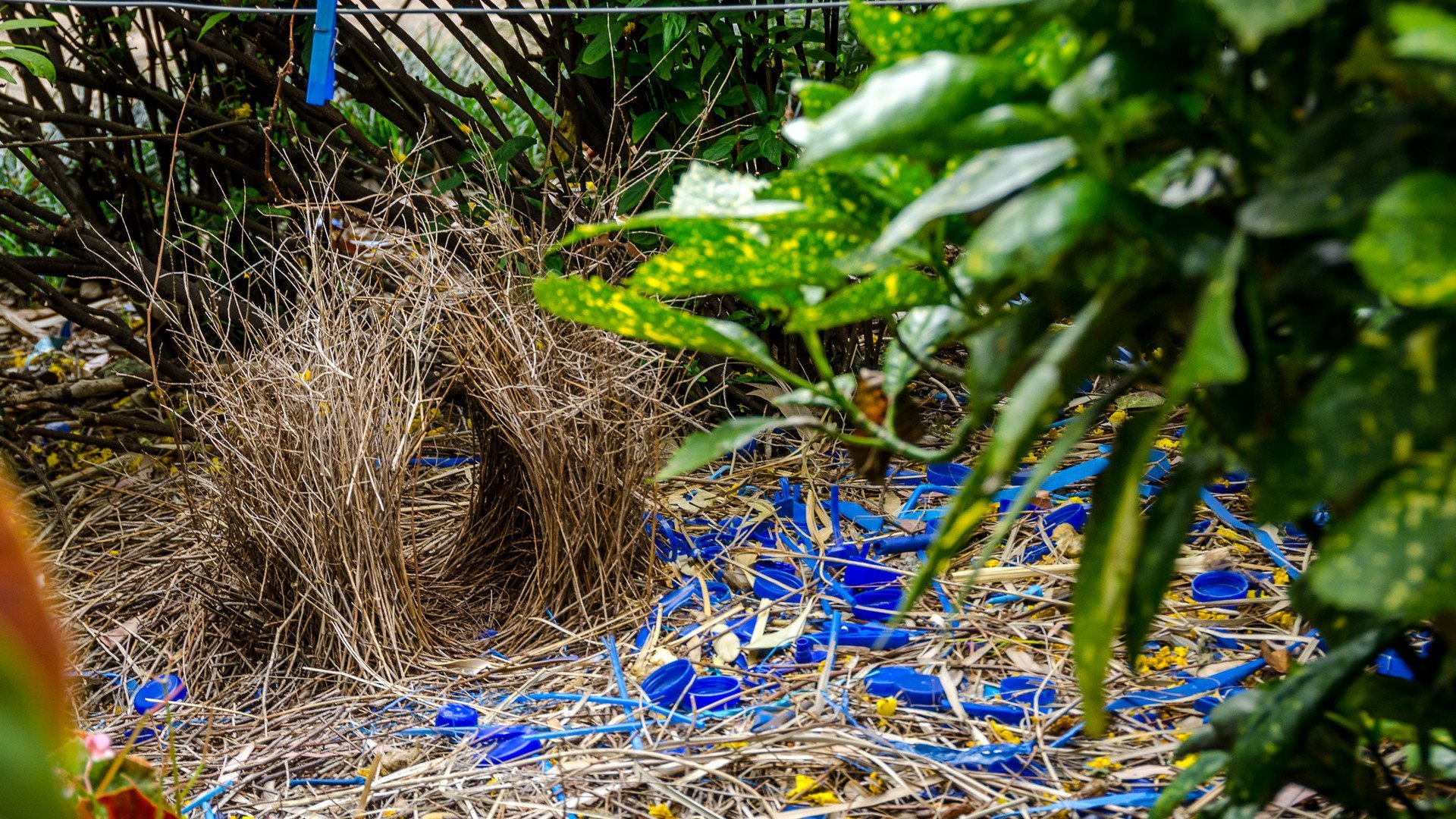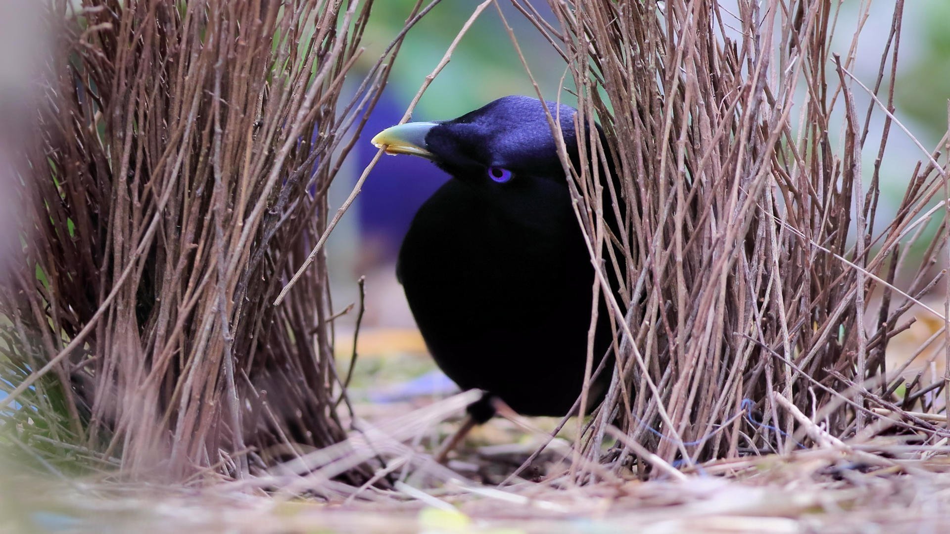 Ptilonorhynchus violaceus гнездо