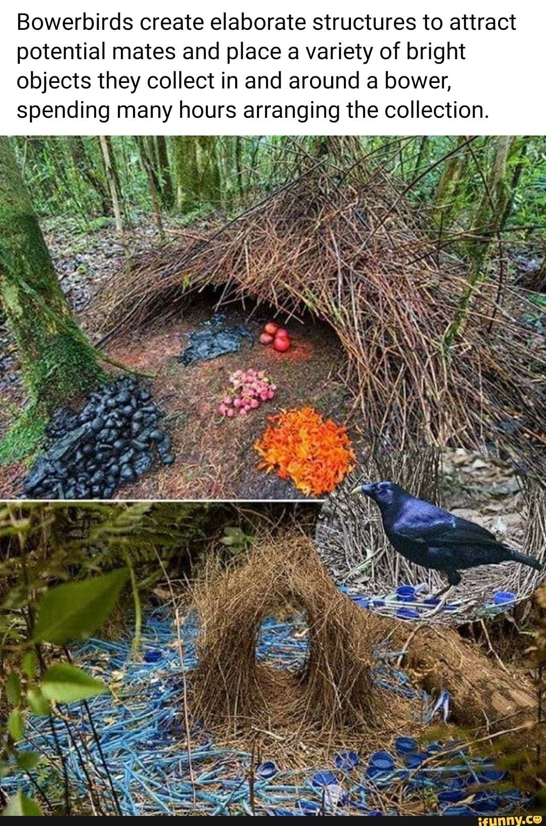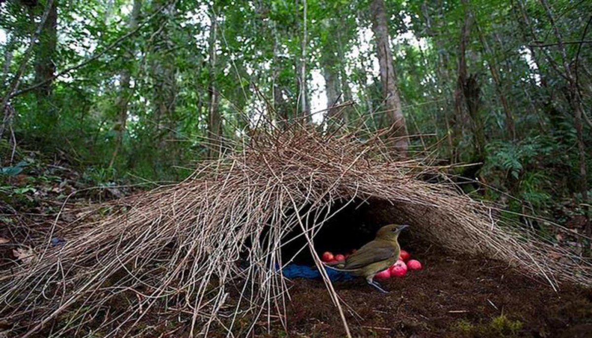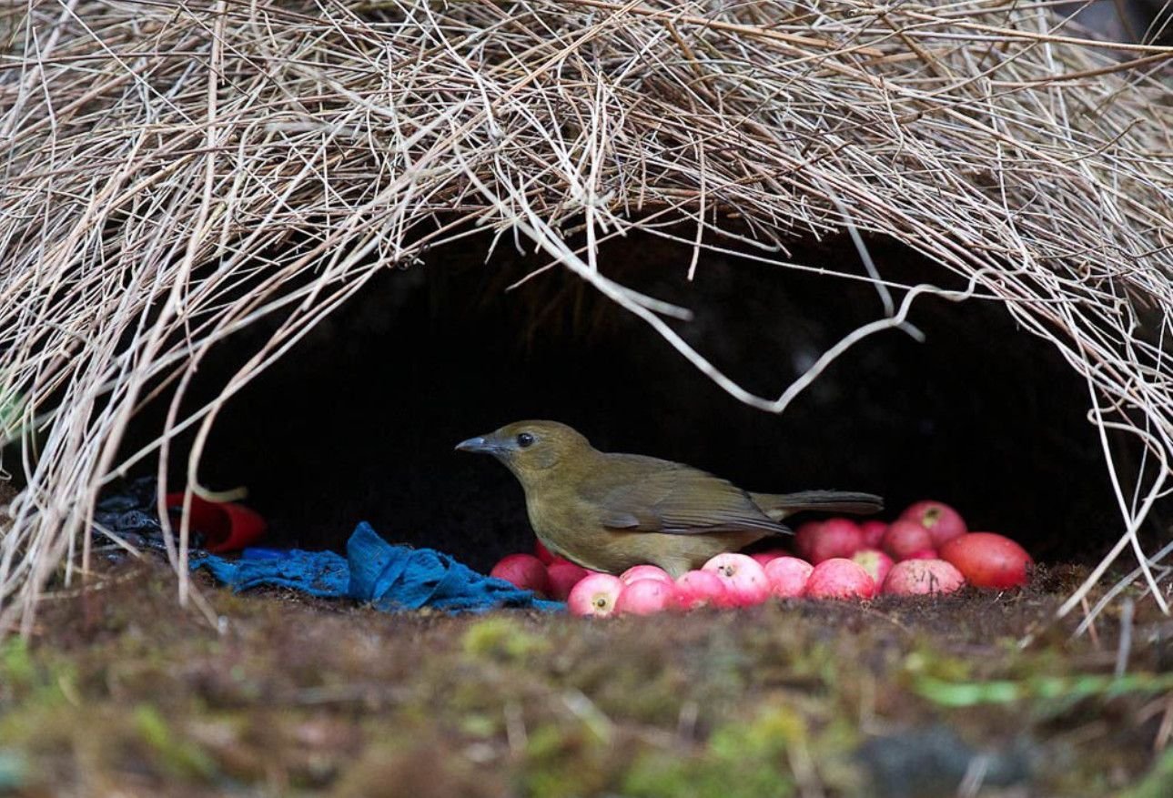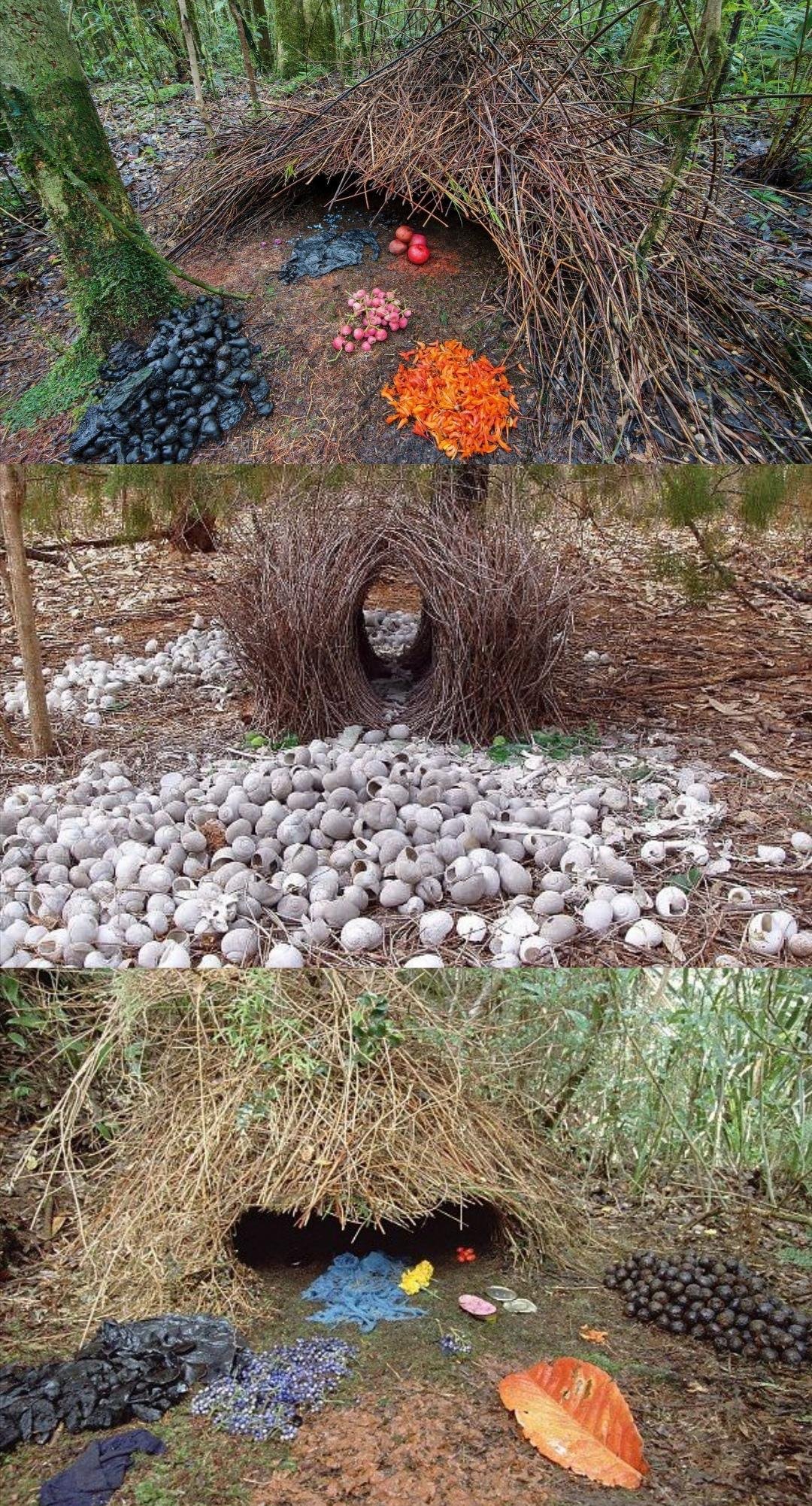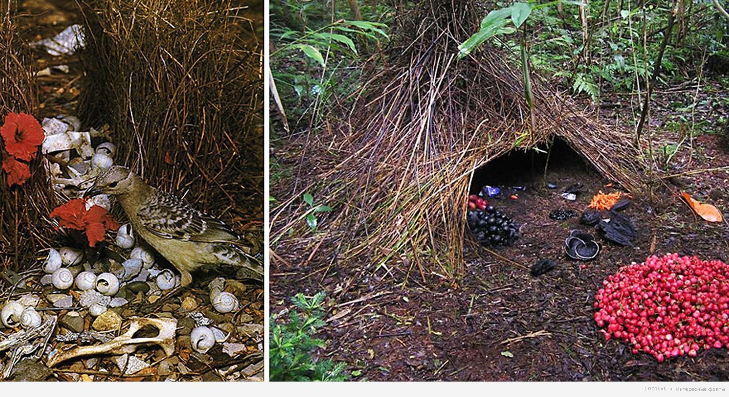 Птицы шалашники в период размножения строят сооружения