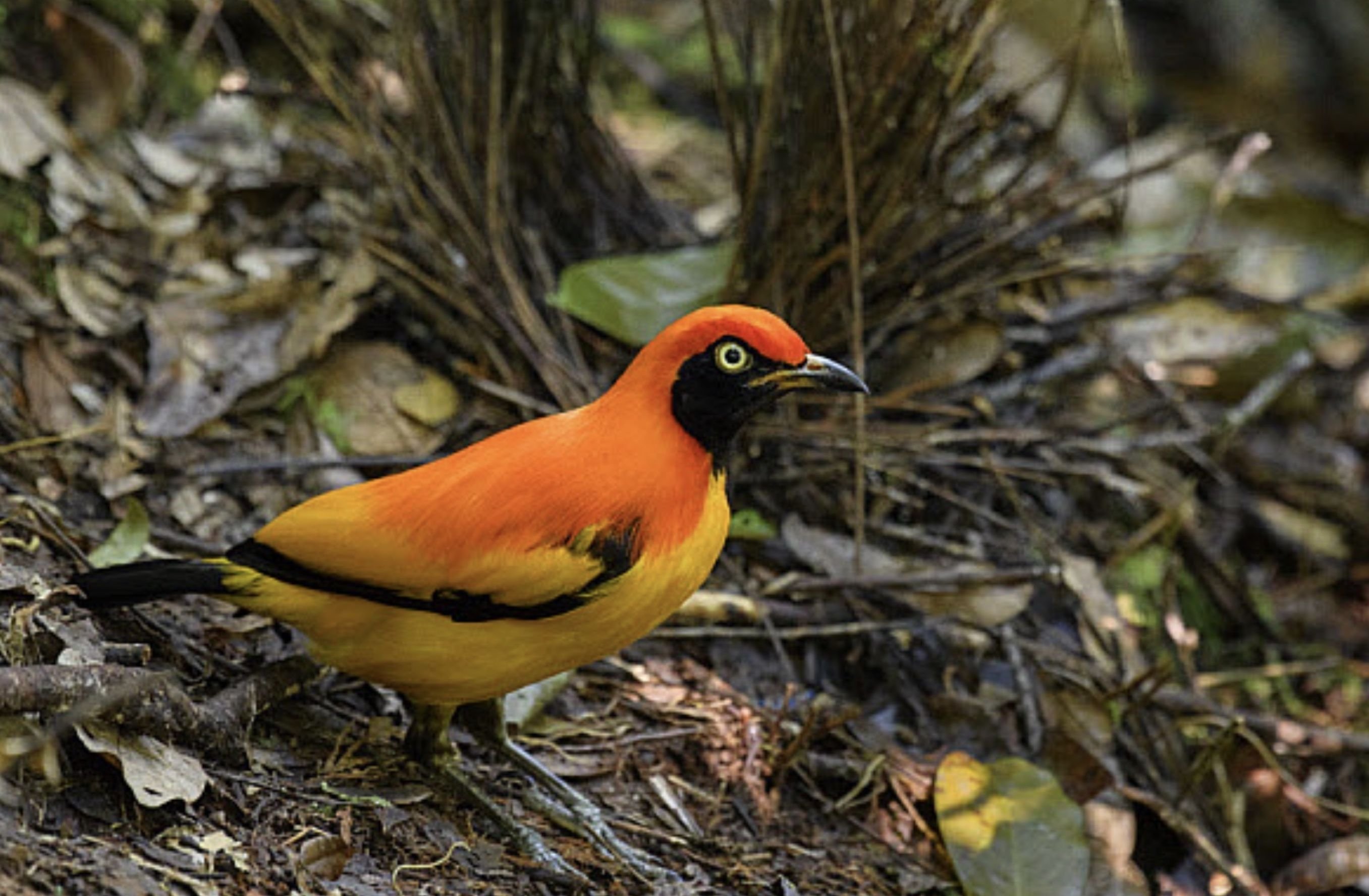 Красношапочный золотой шалашник