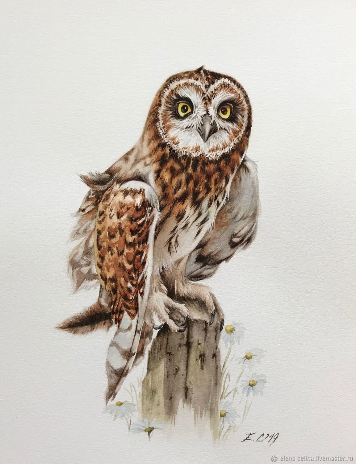 Болотная Сова акварель