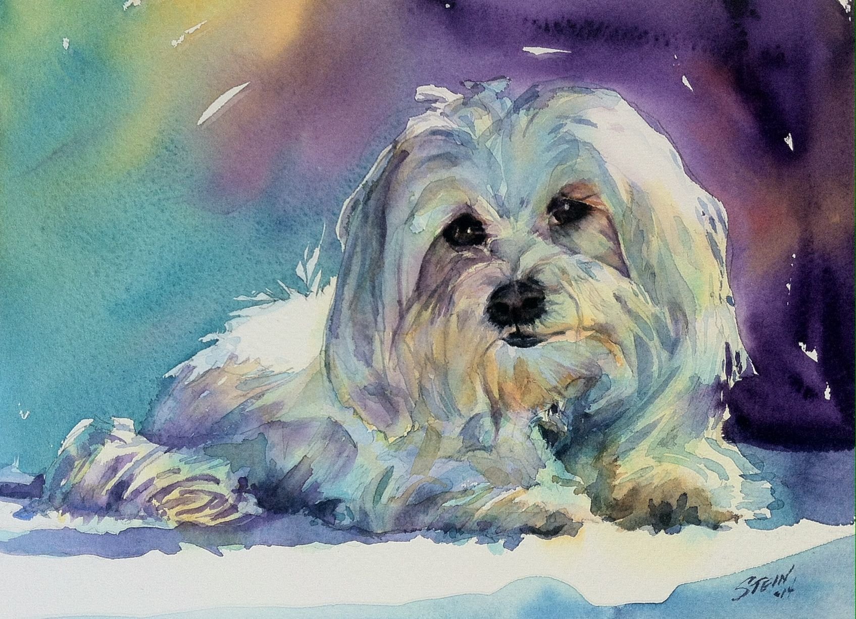 Мальтийская болонка акварель
