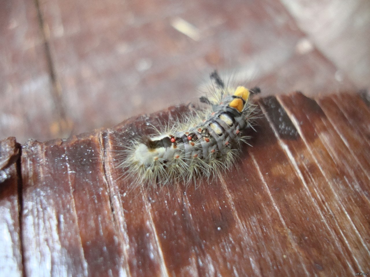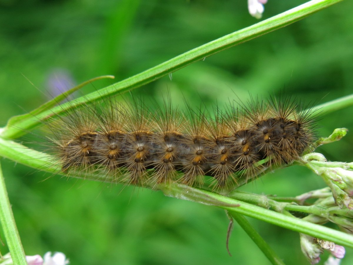 Желтая гусеница с черными мохнатыми рожками