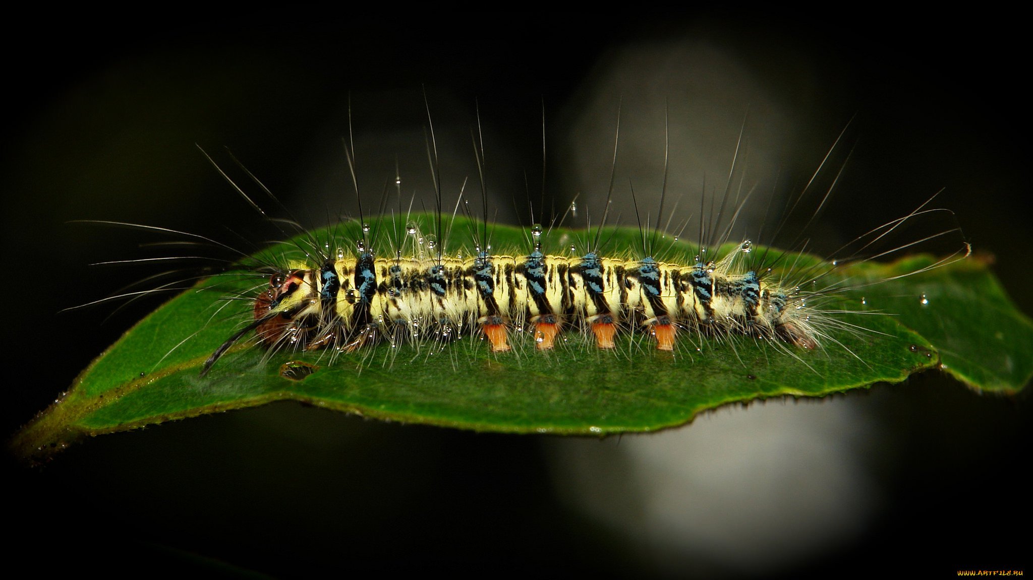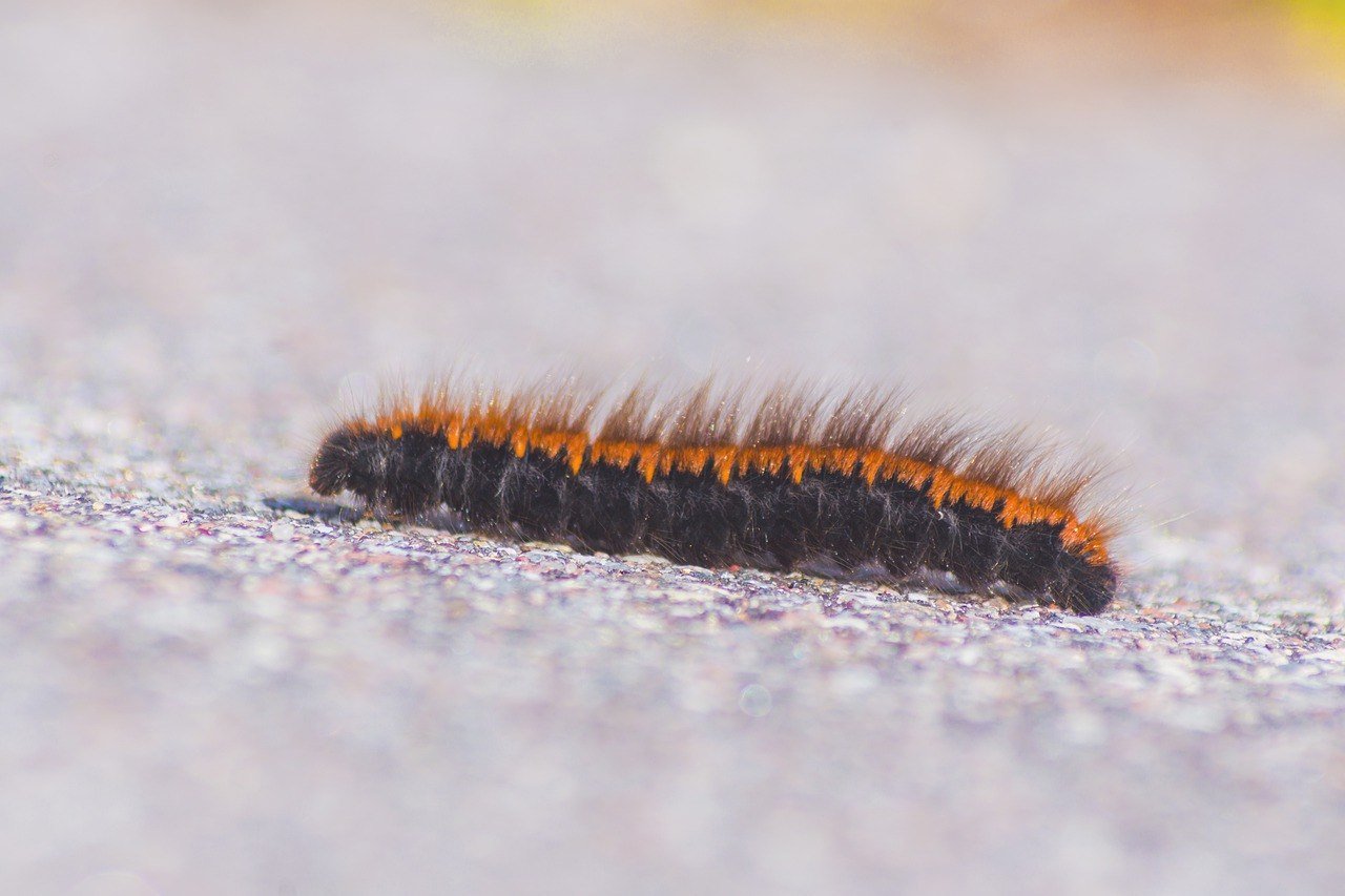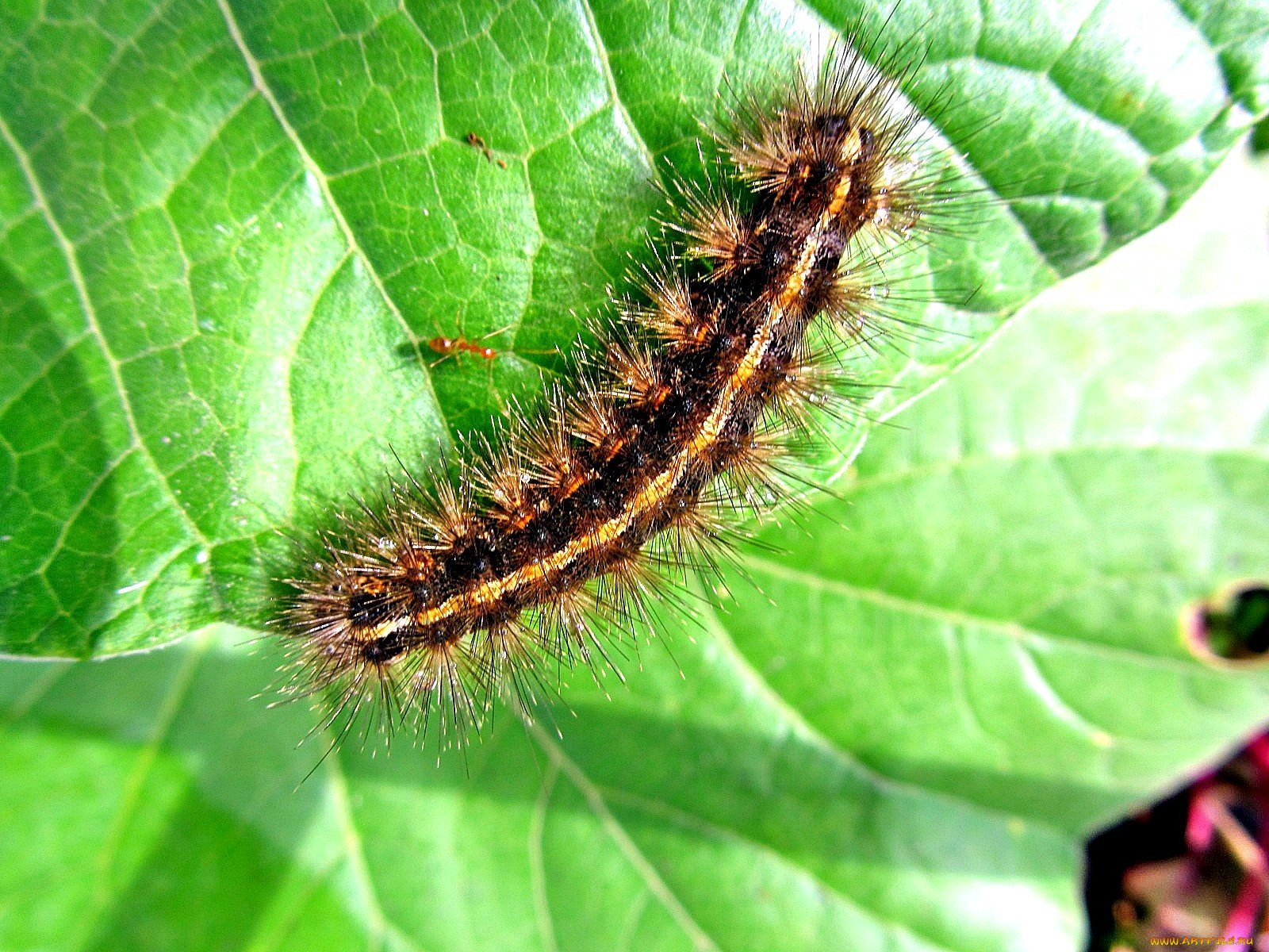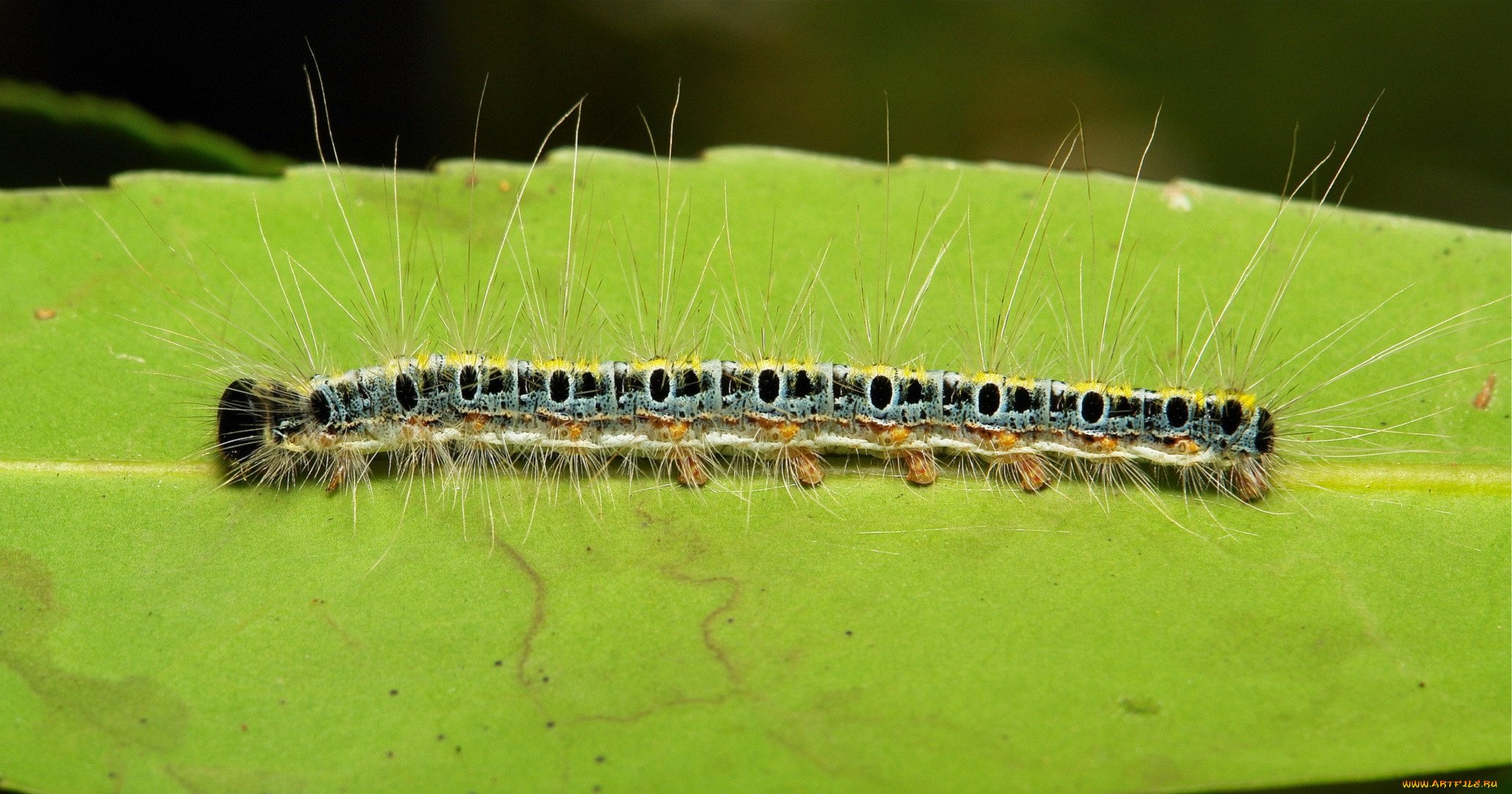 Мохнатая гусеница макро