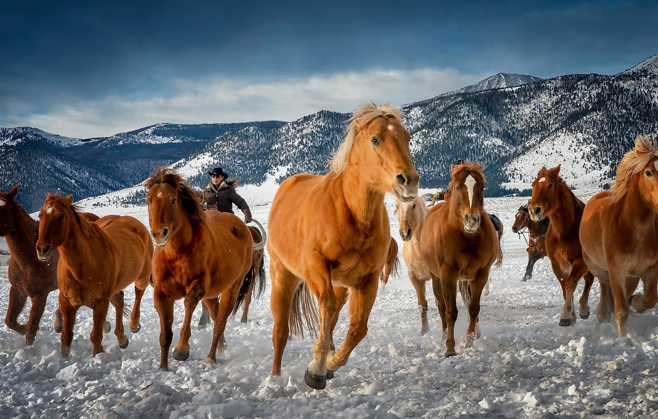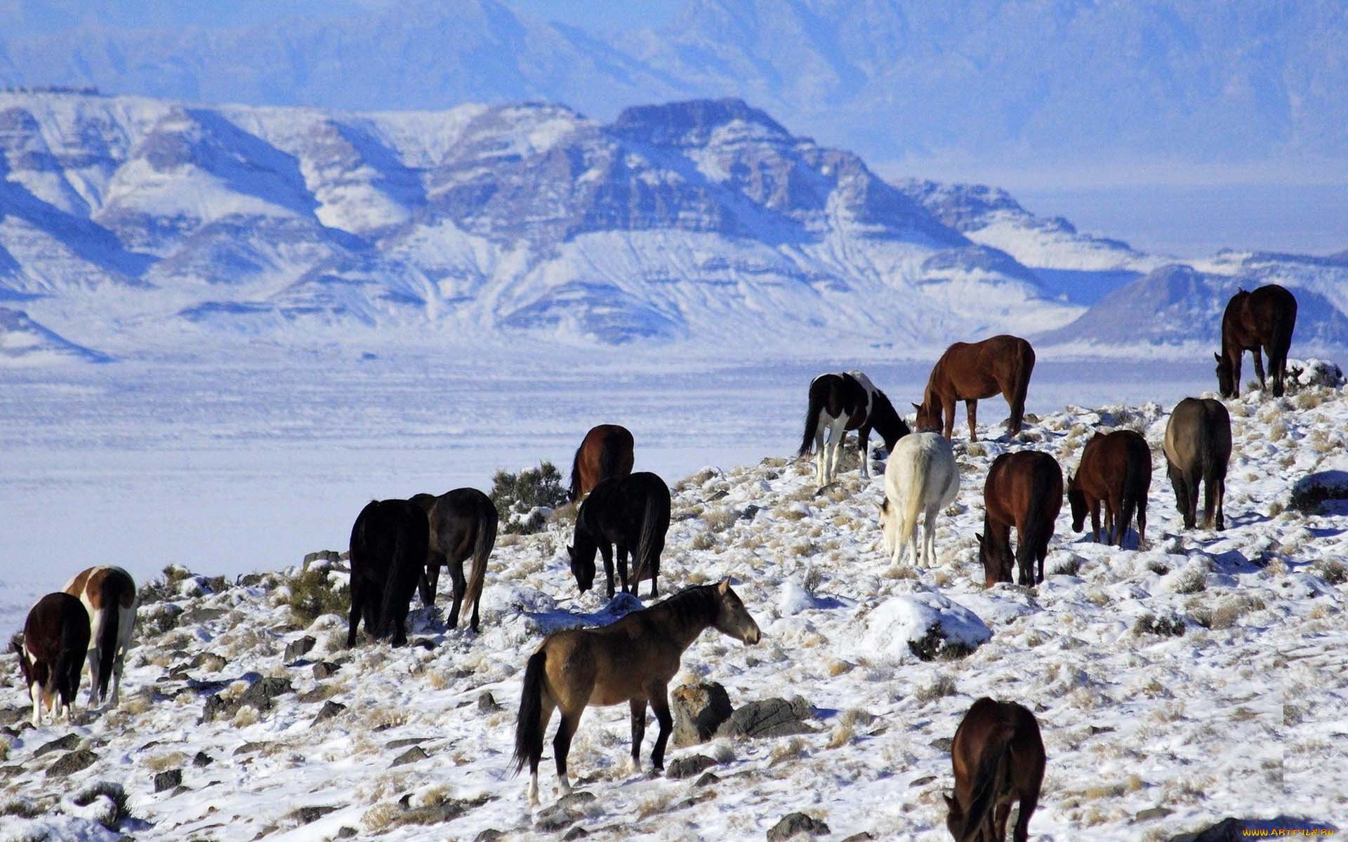 Лошади зимой в горах