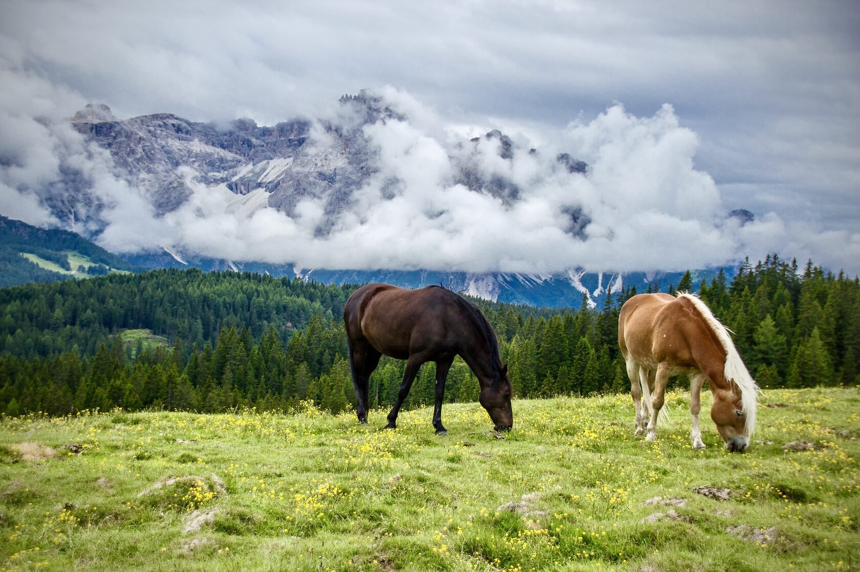 Лошади на фоне гор