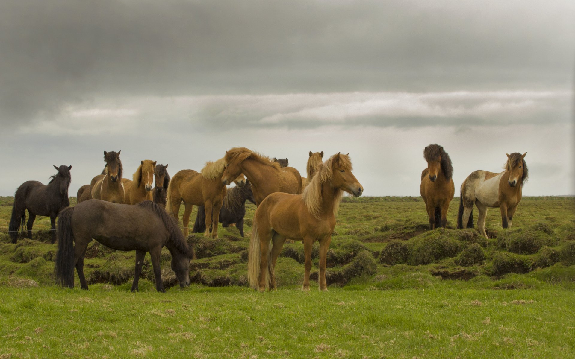 Табун диких лошадей в Исландии