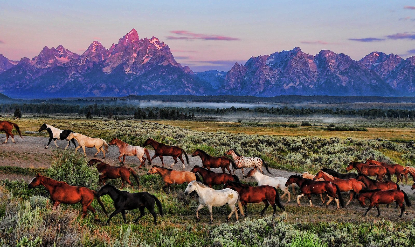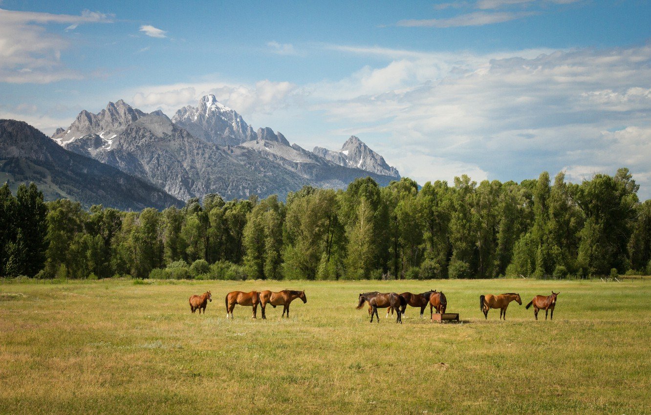 Гранд Тетон национальный парк Вайоминг США лошади