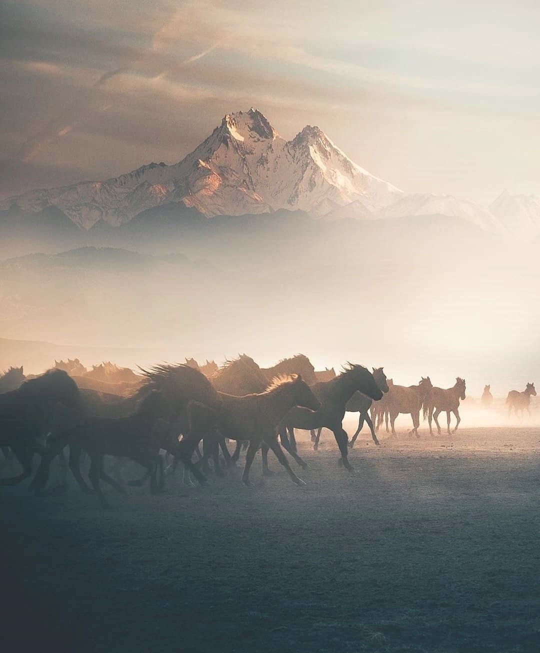 Мчащийся табун лошадей