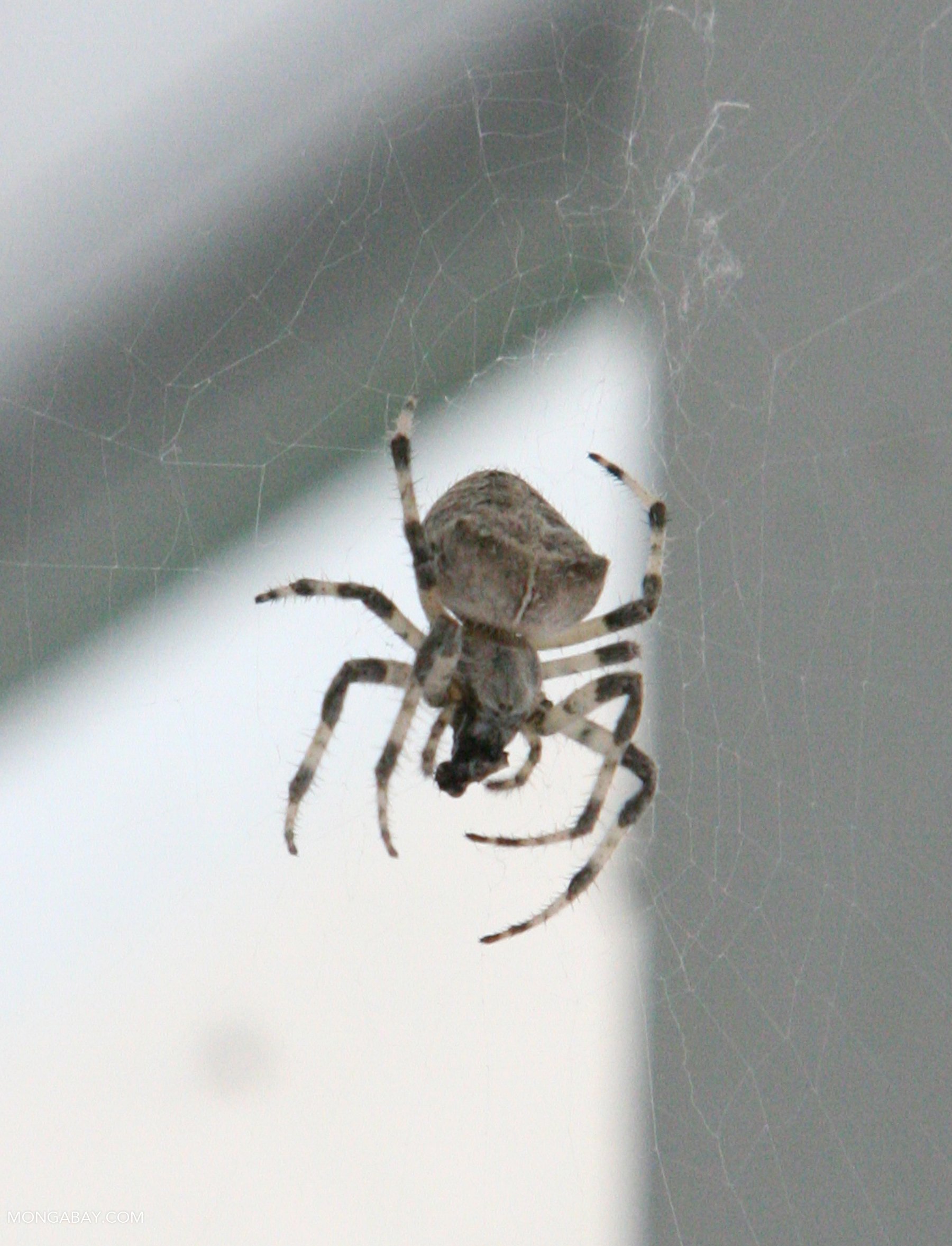 Серый паук с полосами