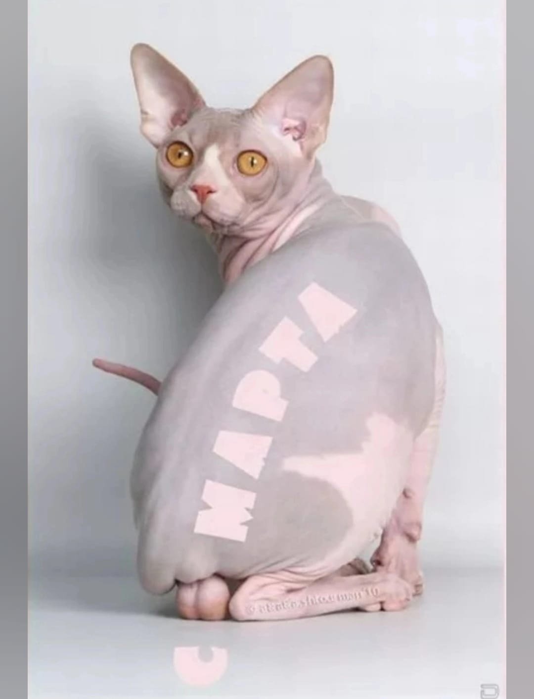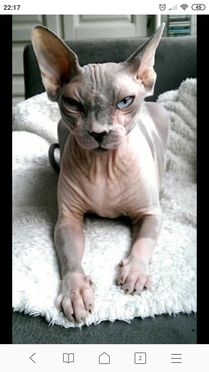 Недовольный лысый кот