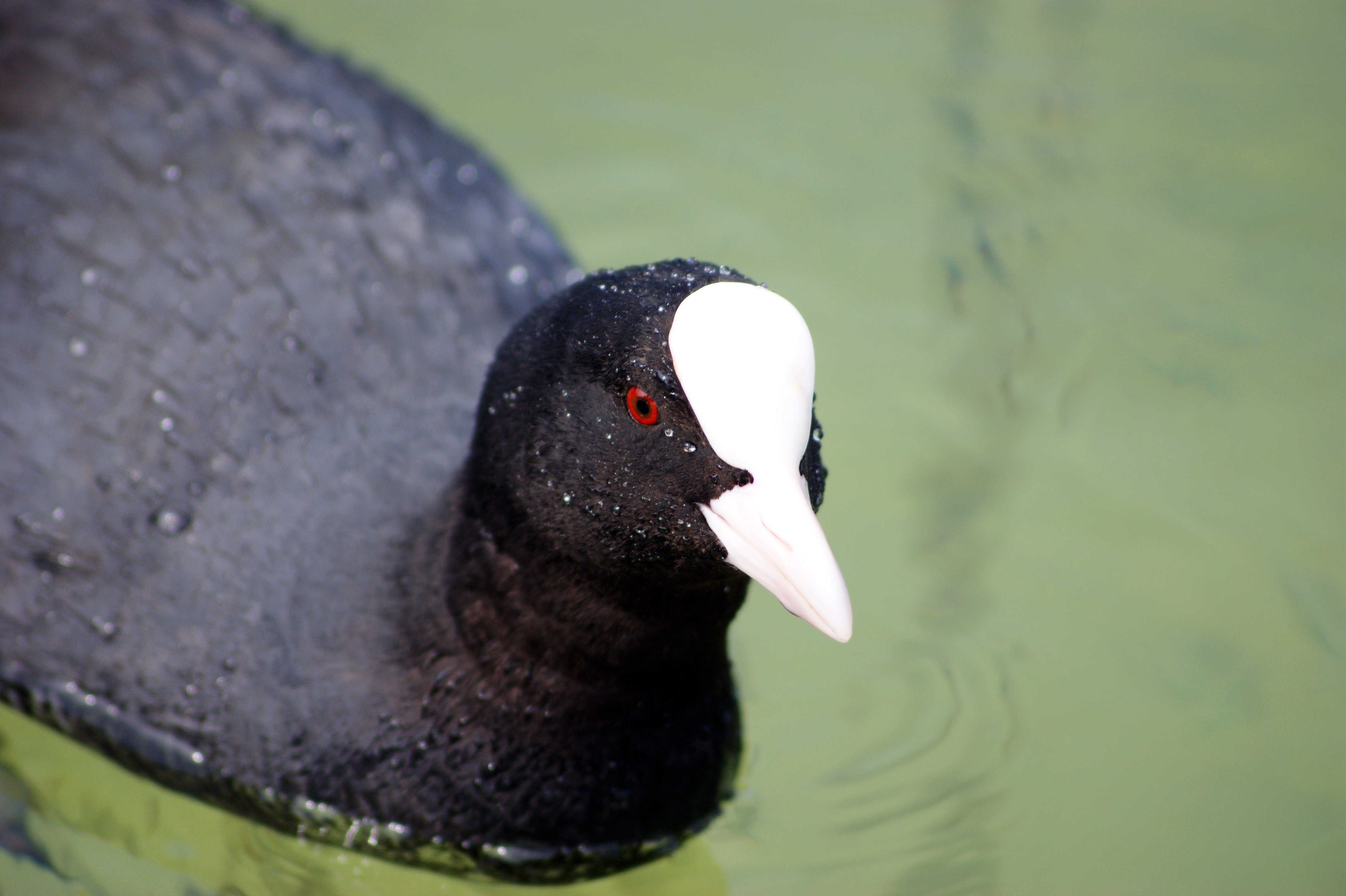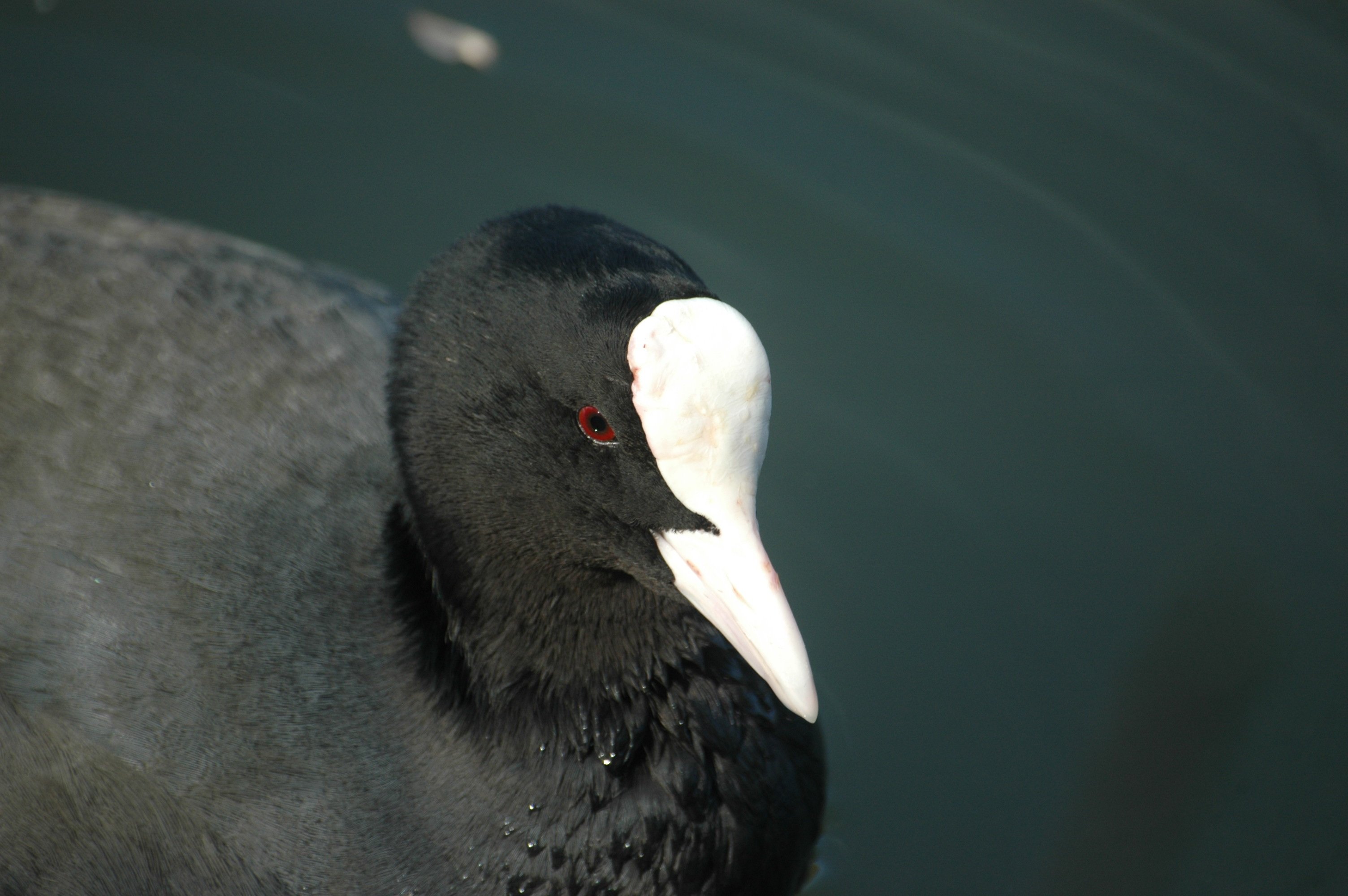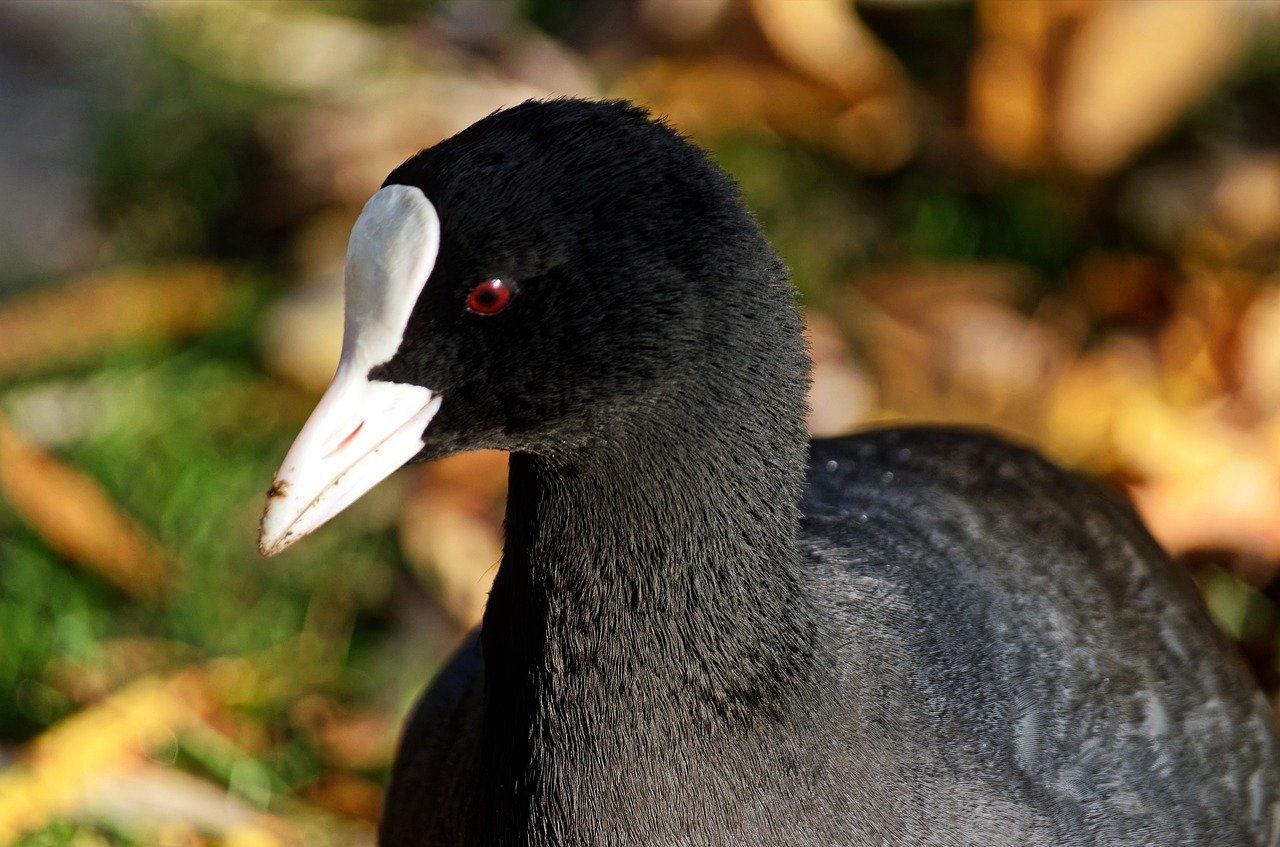 Чёрная птица с белым клювом водоплавающая