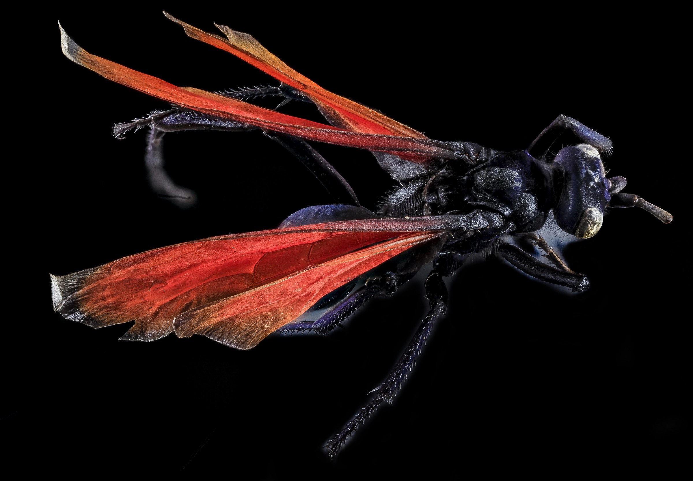 Летучее насекомое с черно красными крыльями