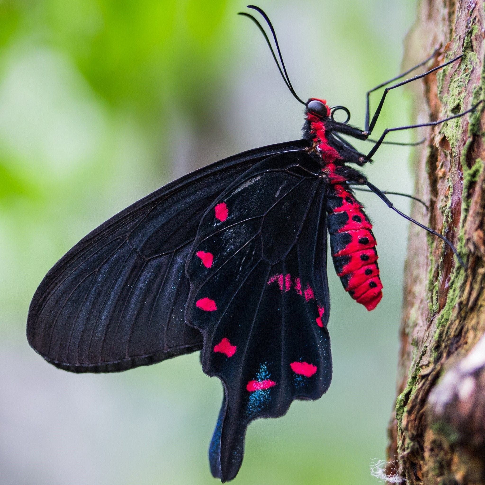 Черный мотылек с красными пятнами
