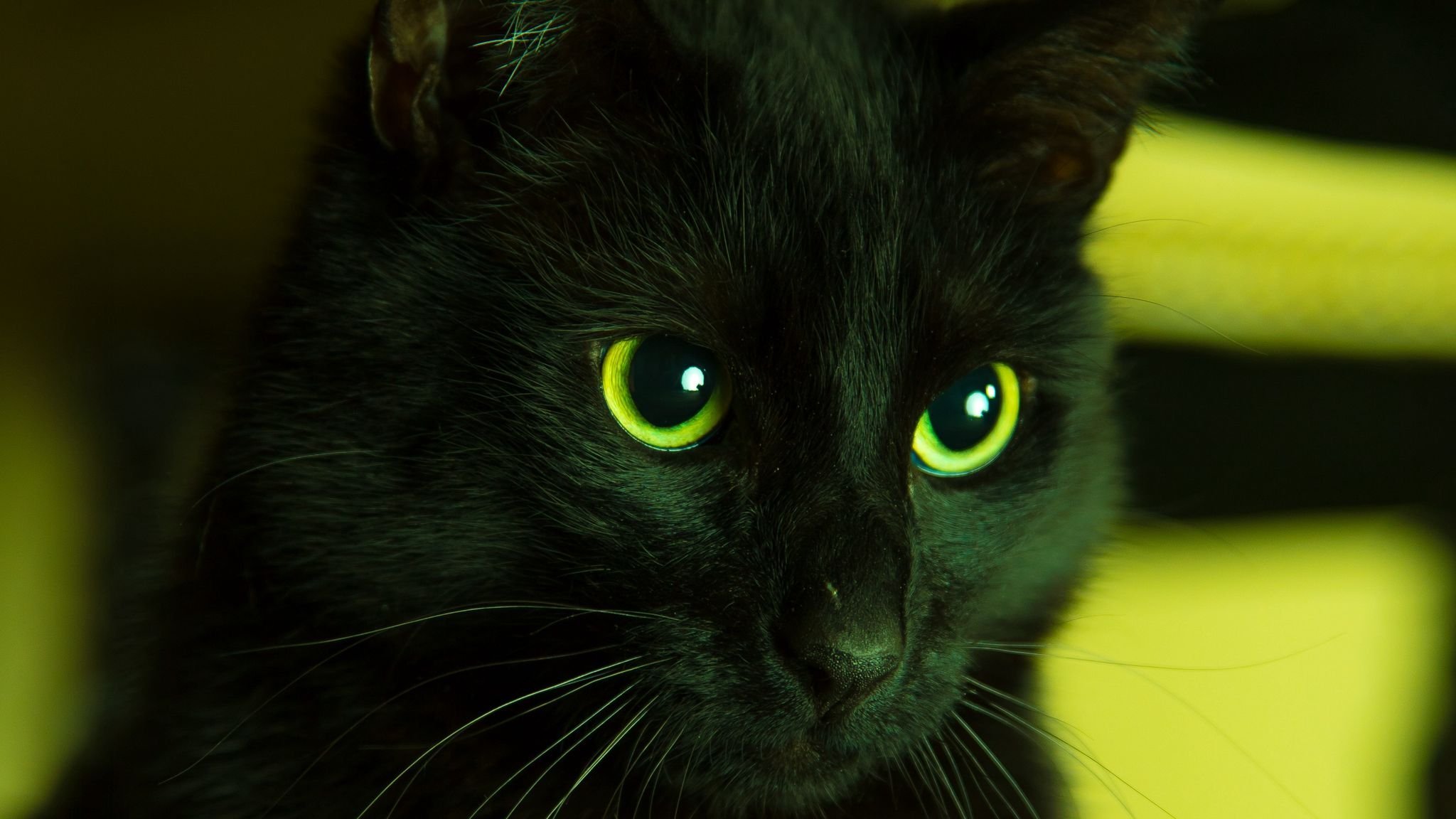 Черный кот с желтыми глазами