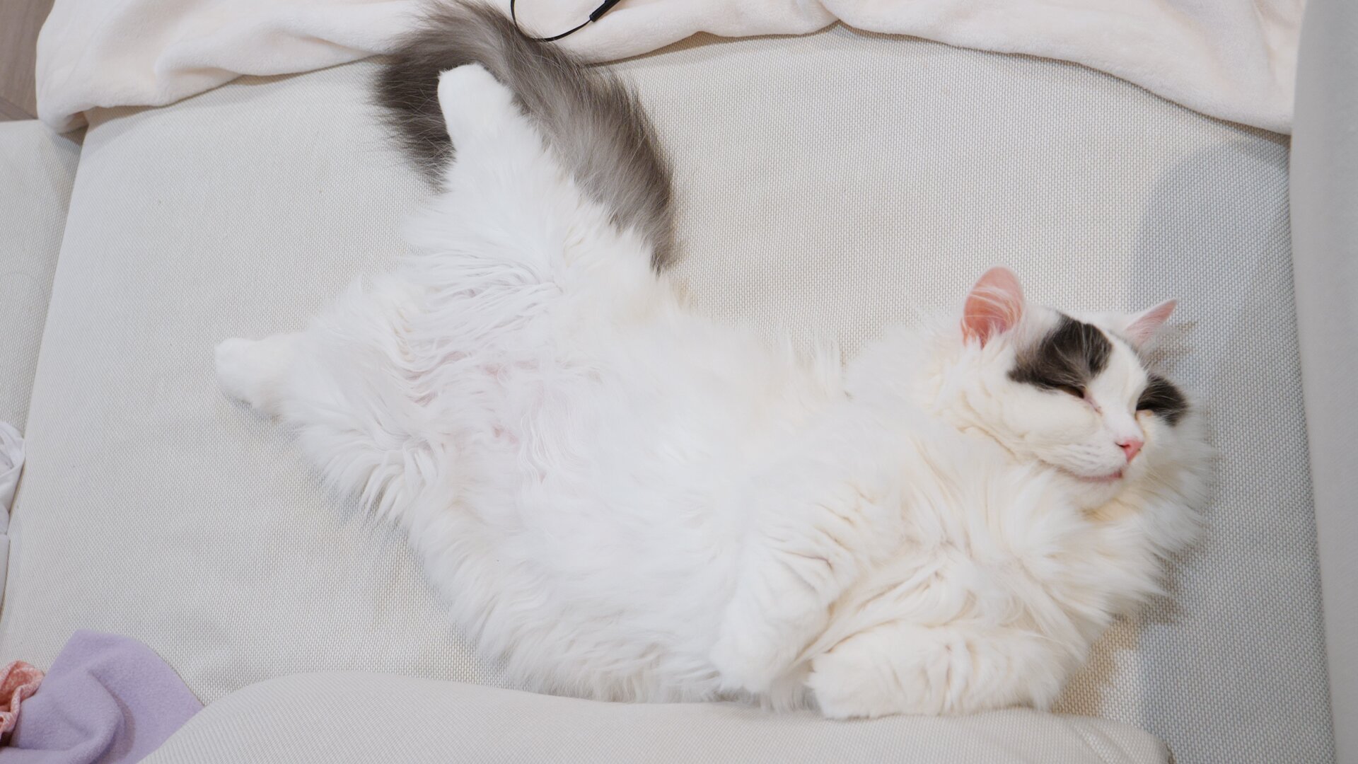 Пушистая кошка лежит