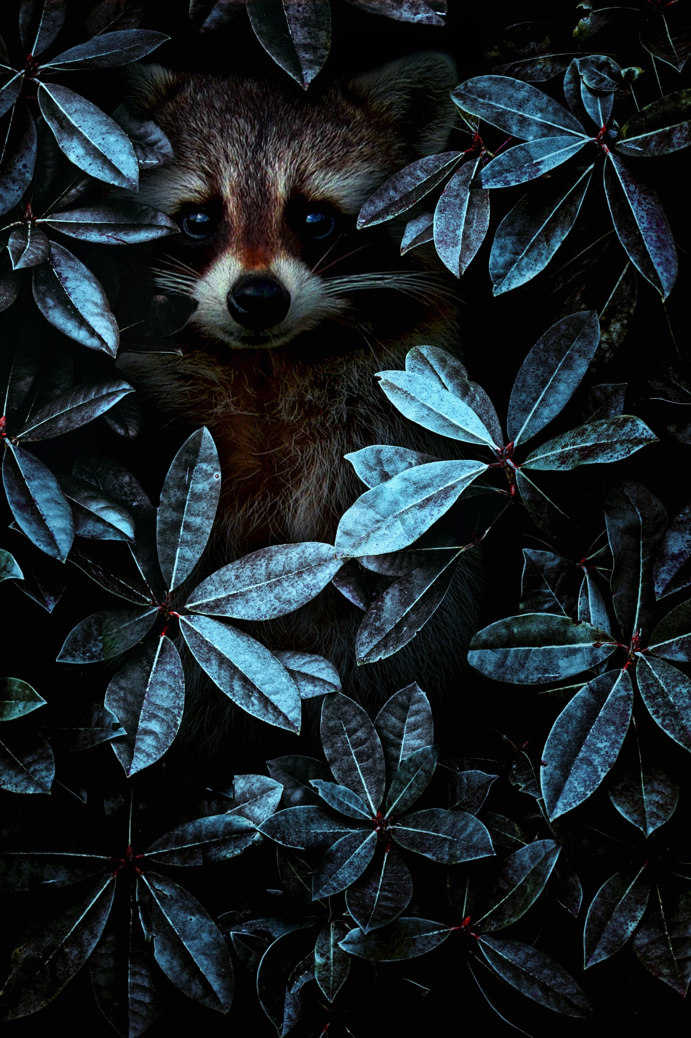 Енот в кустах