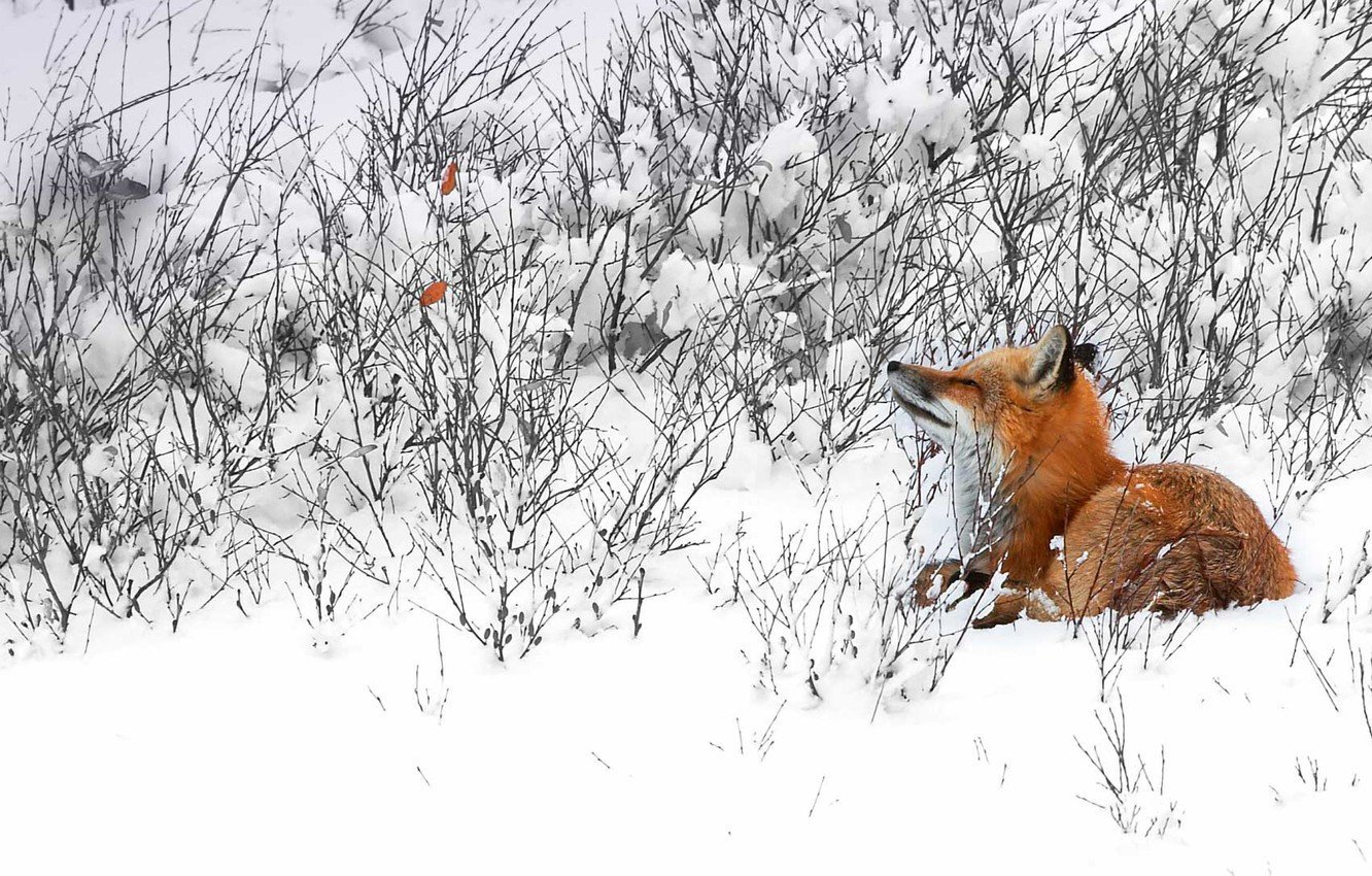 Лиса на фоне зимы