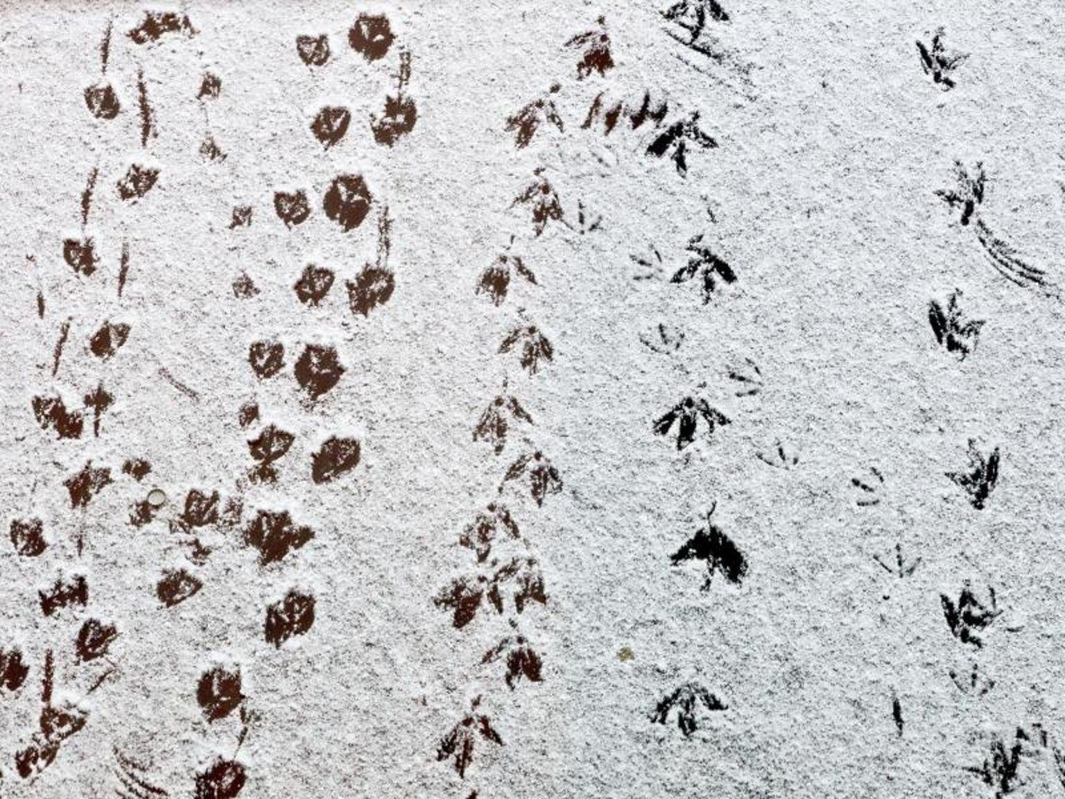 Следы разных животных на снегу