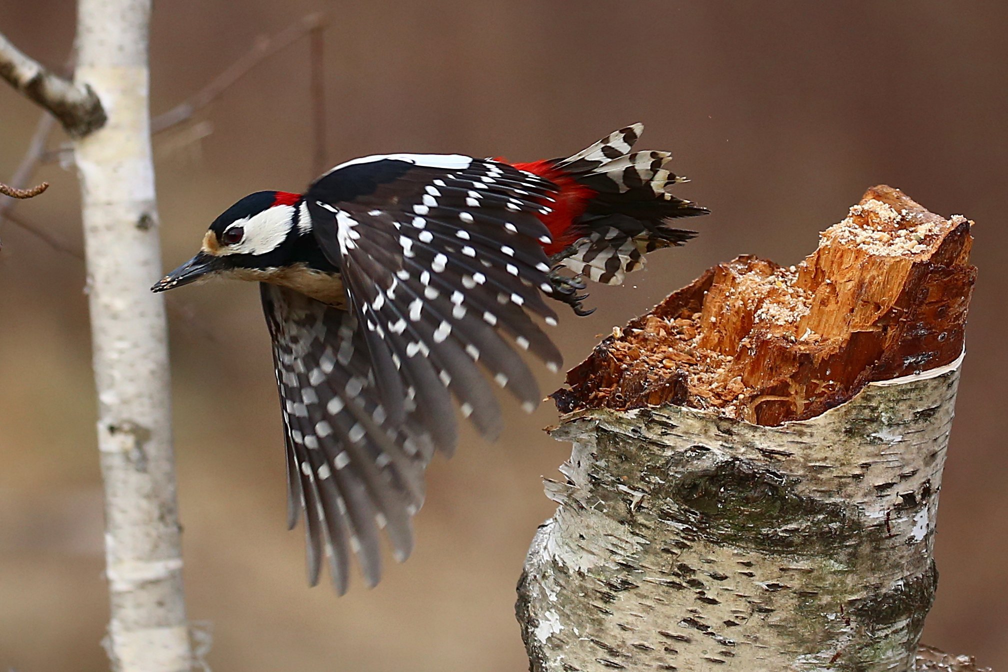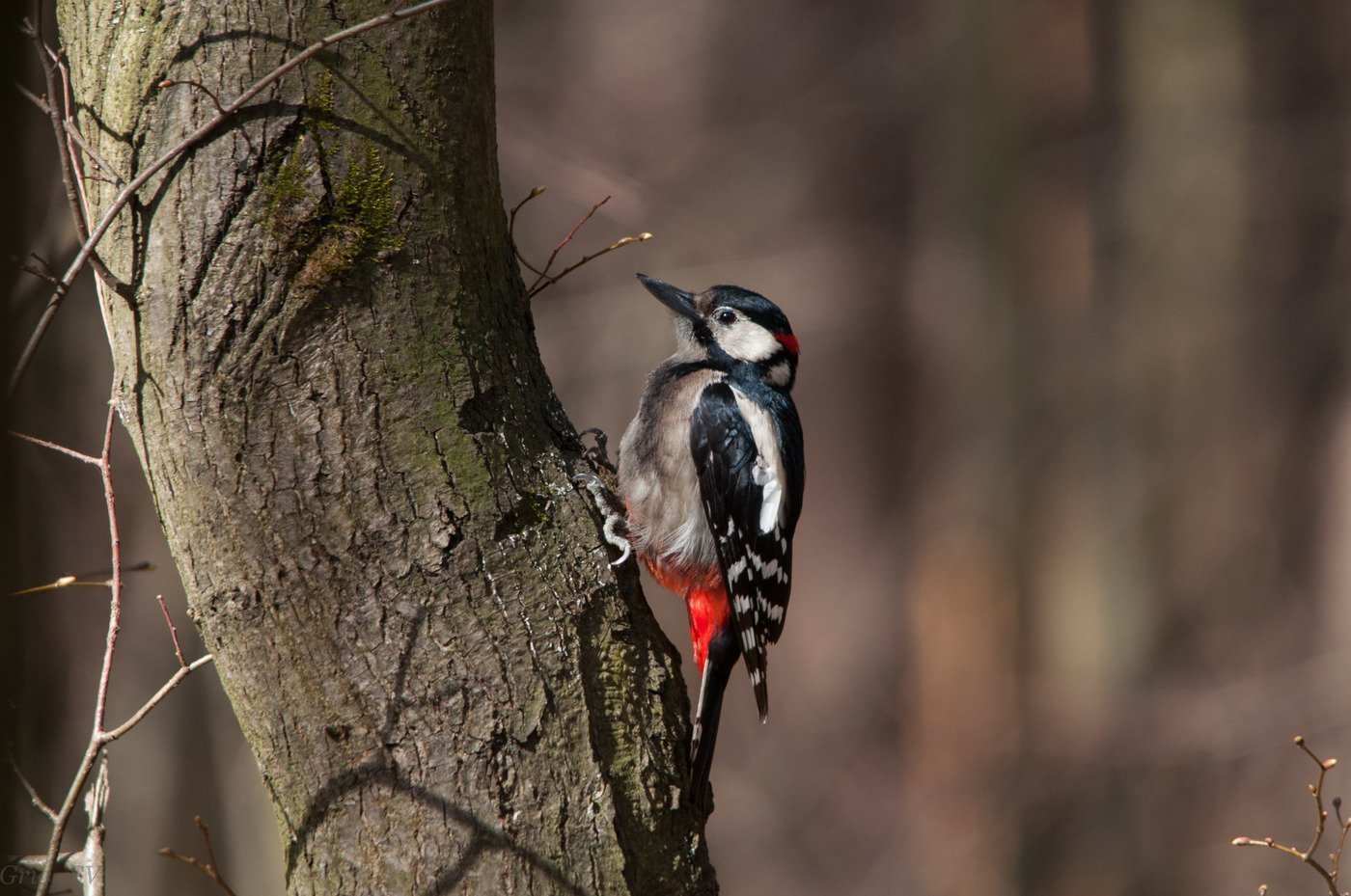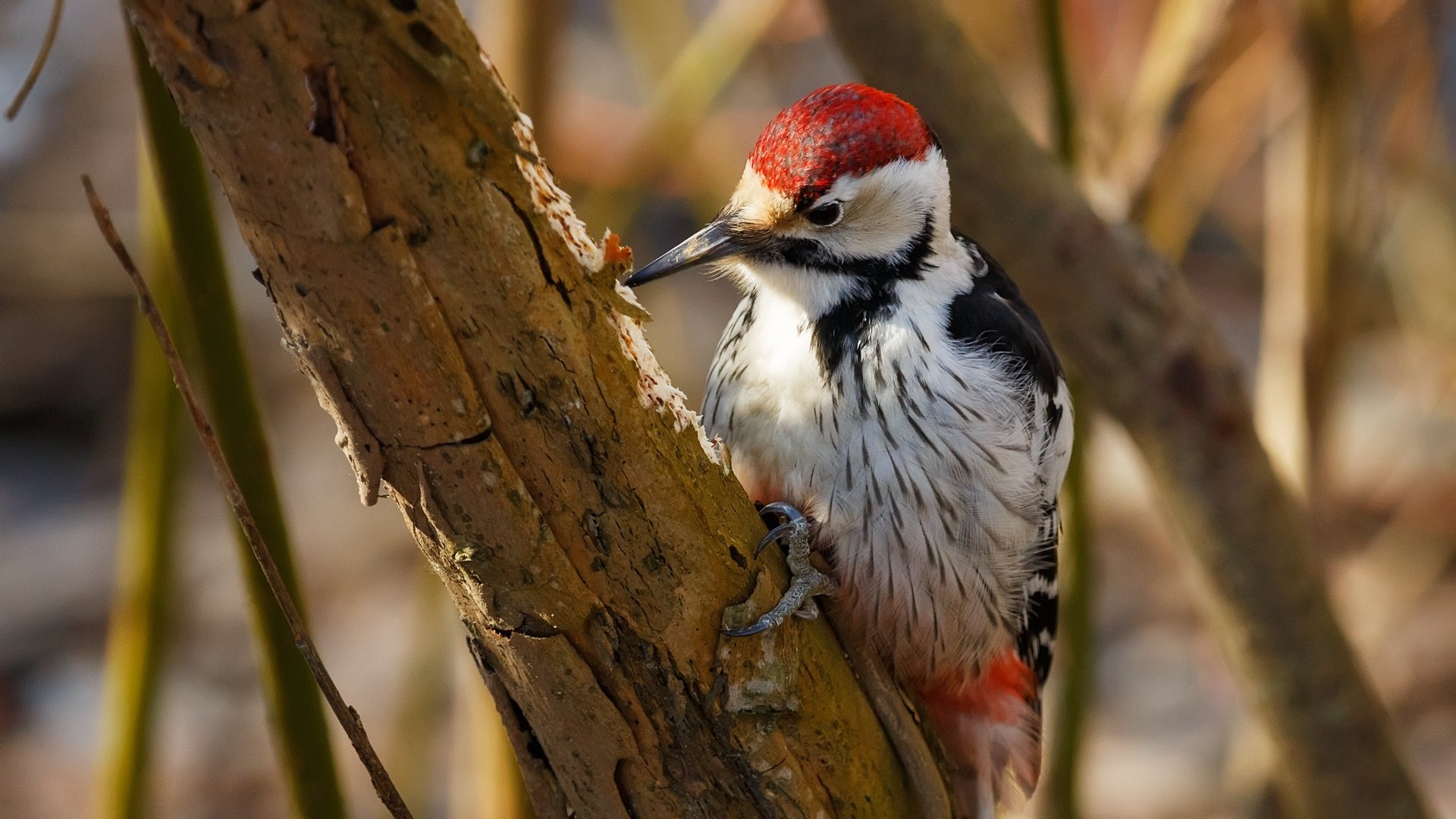 Малый пёстрый дятел зимой