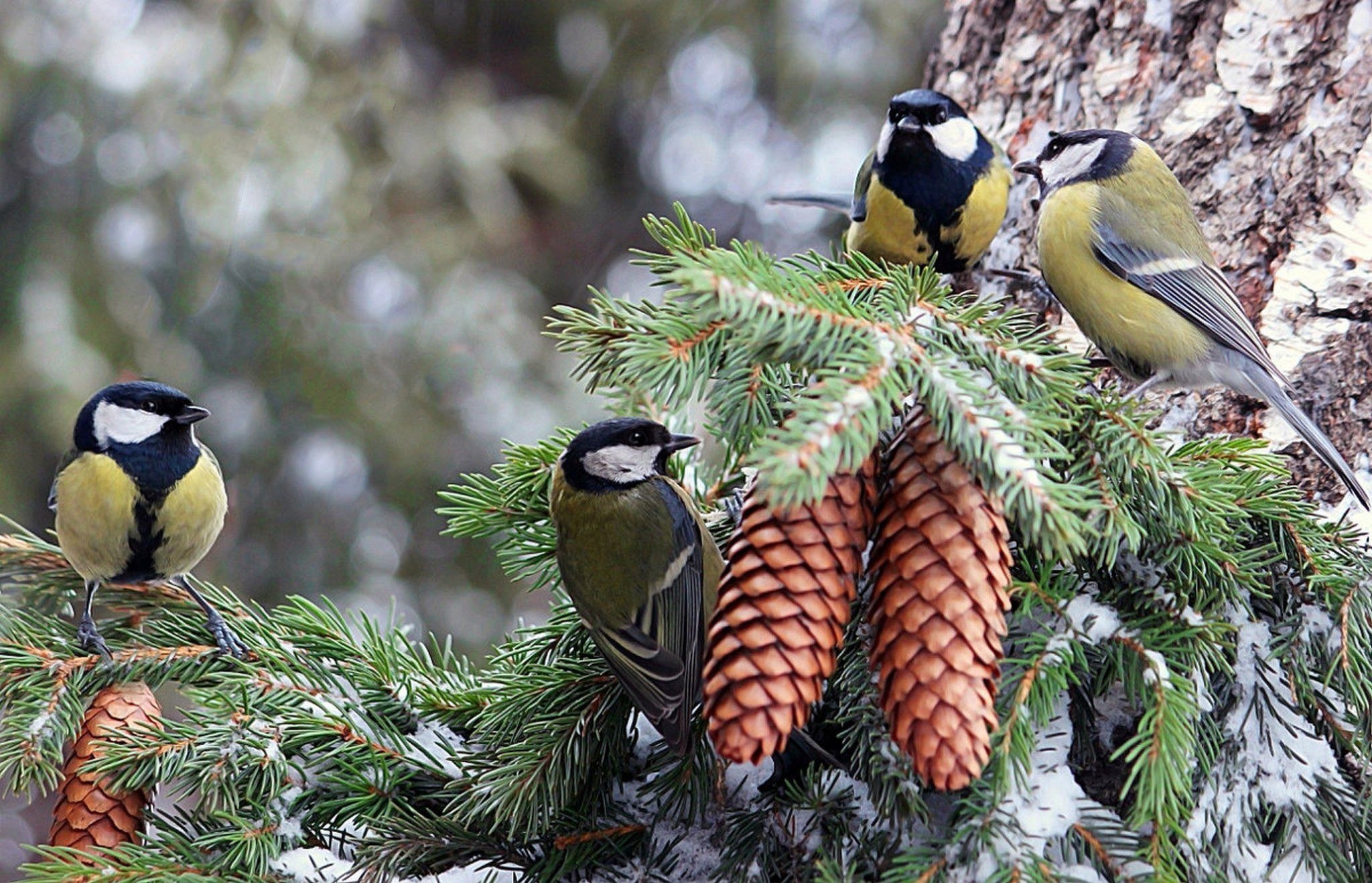 Птицы в хвойном лесу
