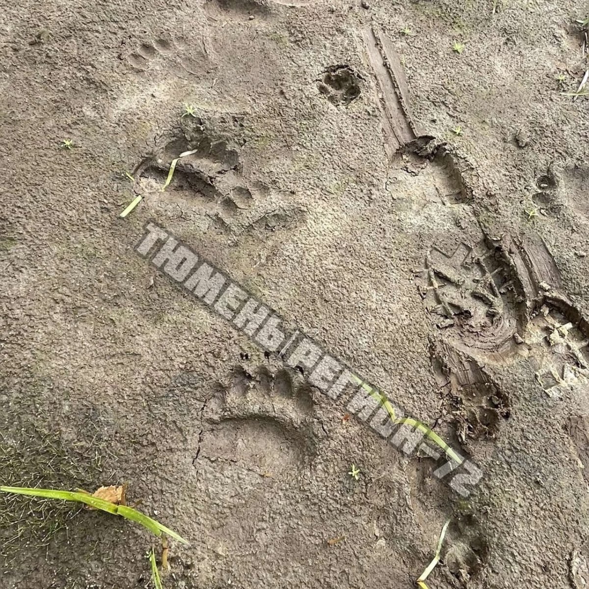 Следы медведя на траве