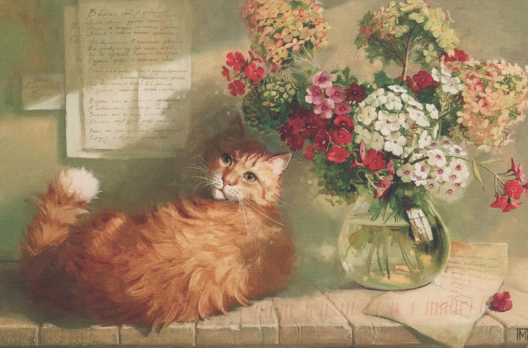 Кот с цветами открытка