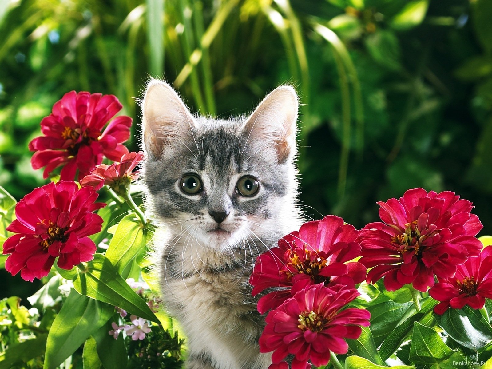 Котенок с цветами