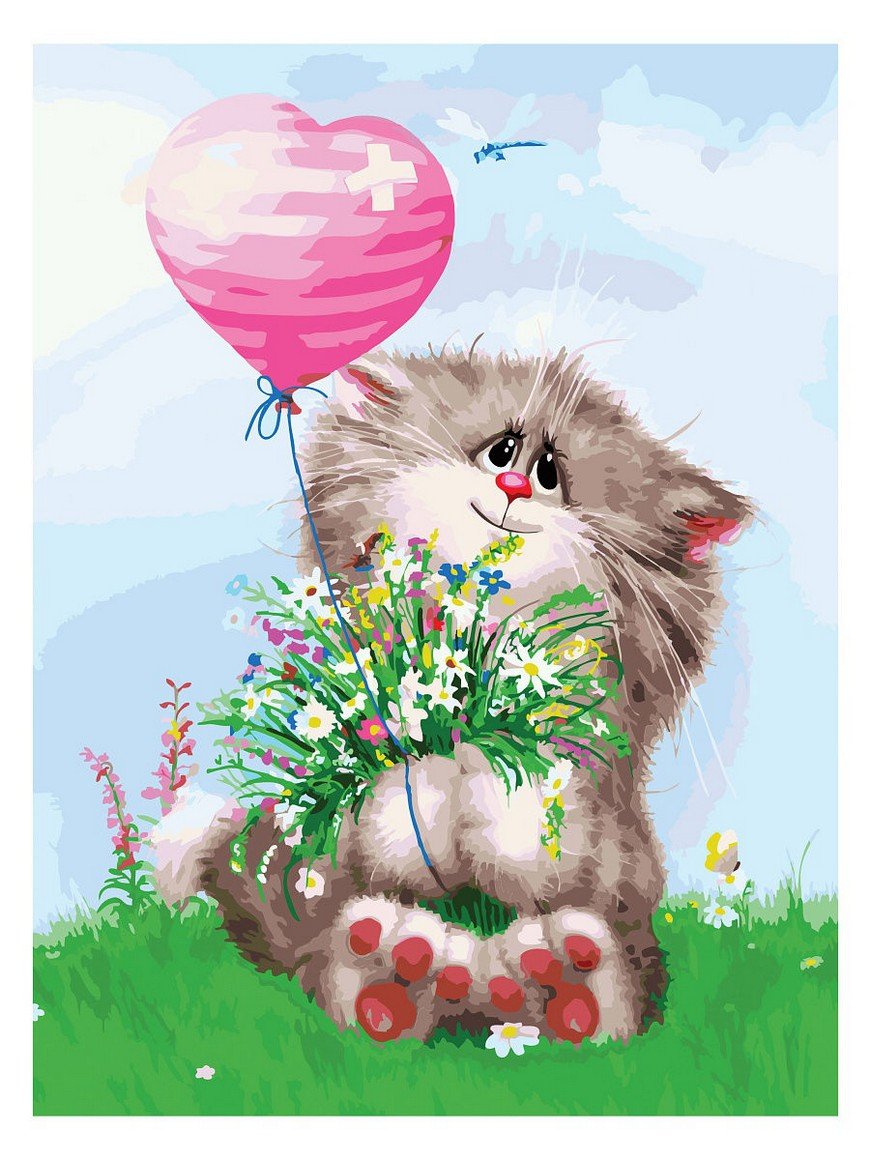 Котик с букетом