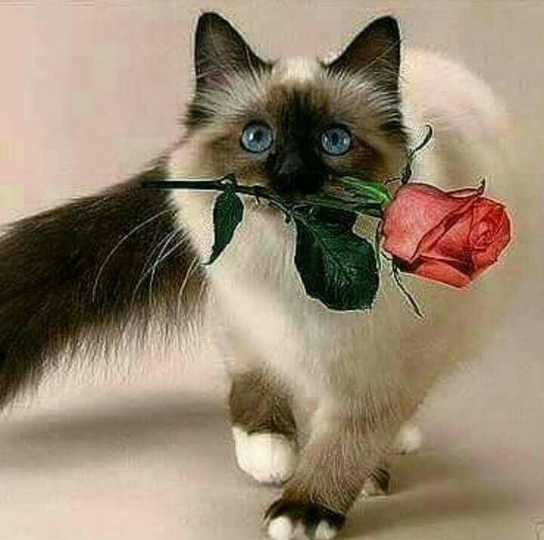 Котик с розой
