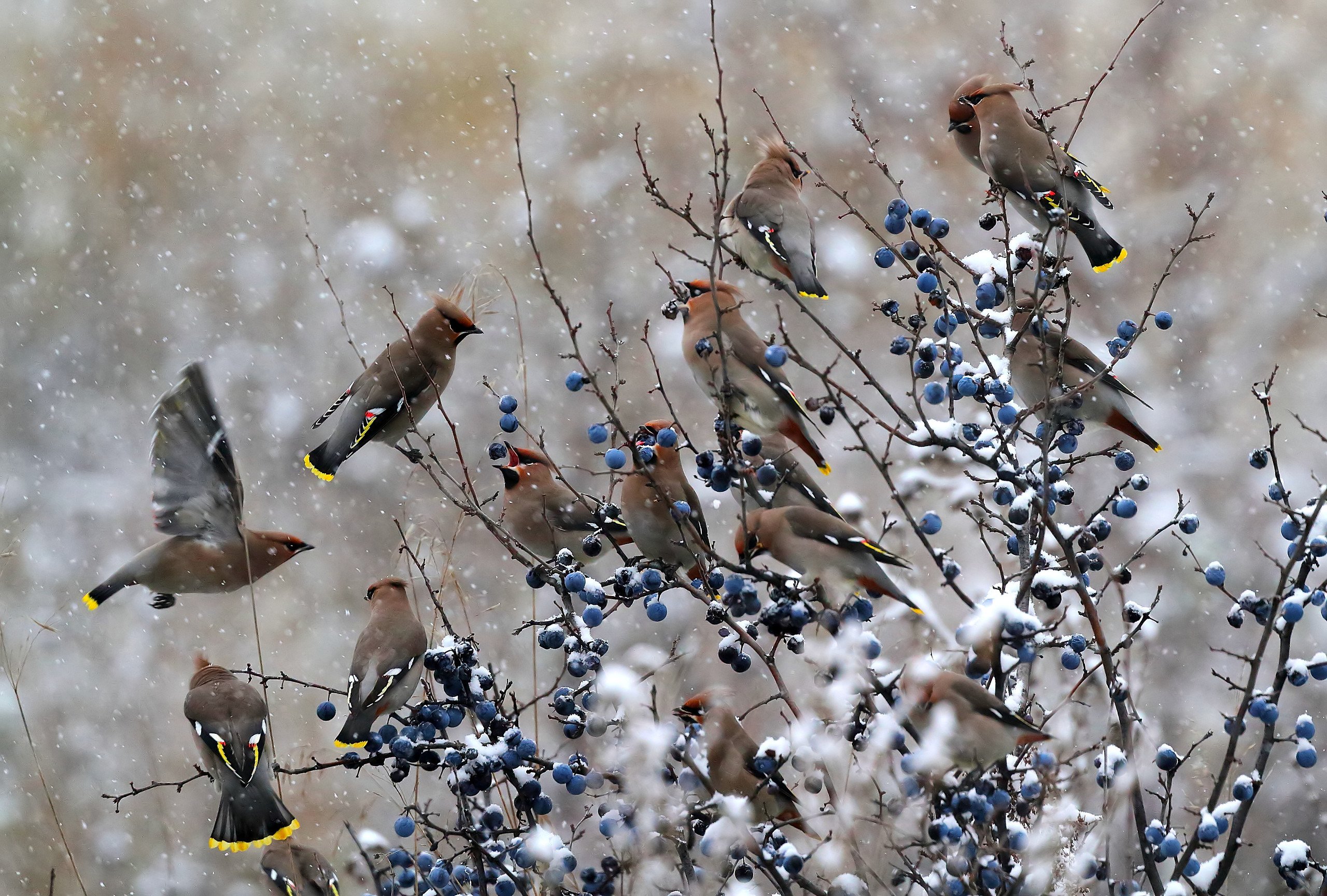 Зимние птички свиристель