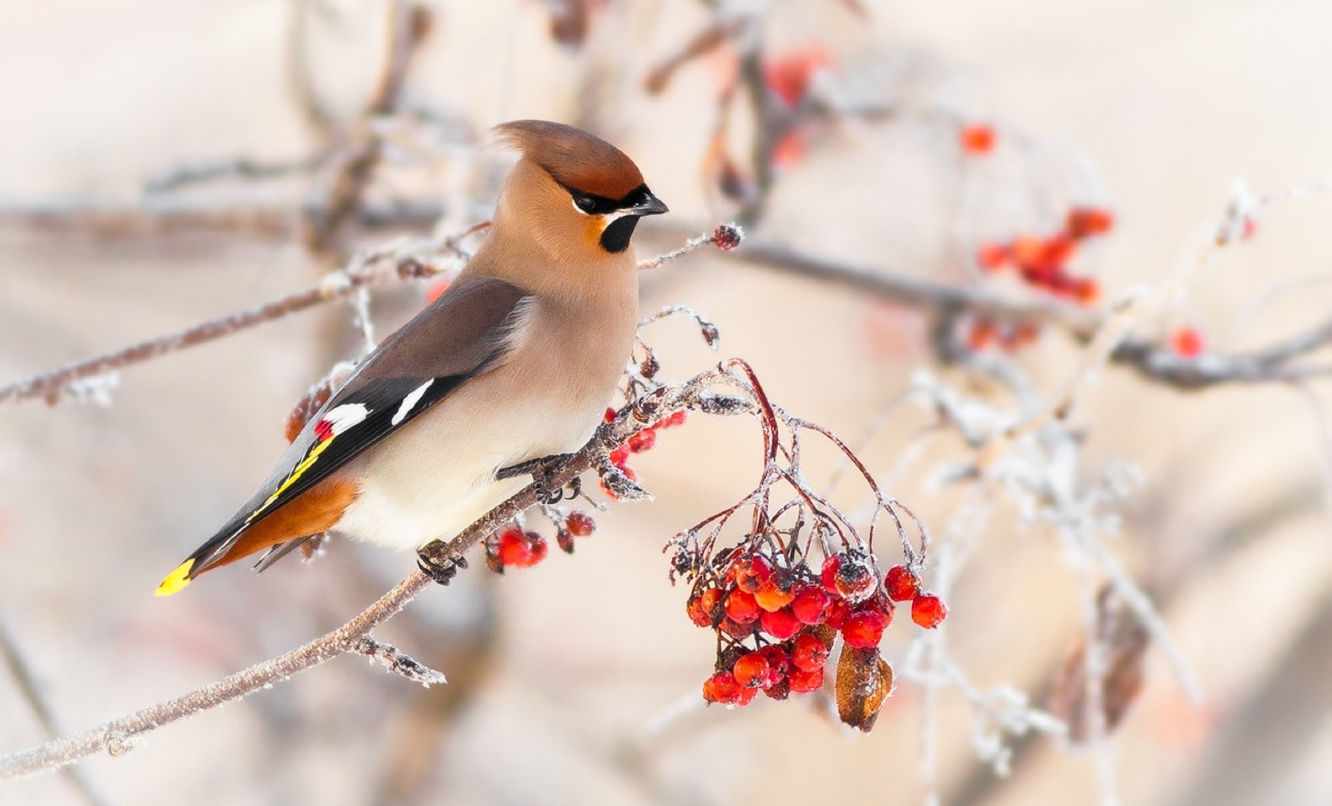 Свиристель зимующая птица зимой