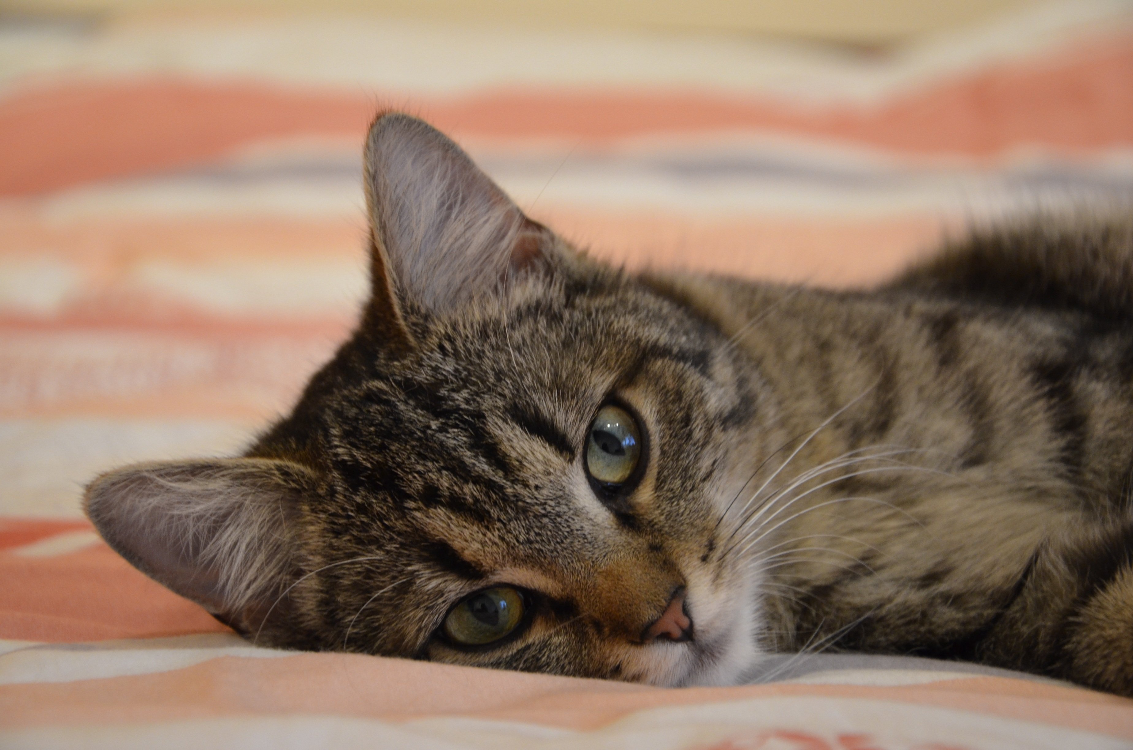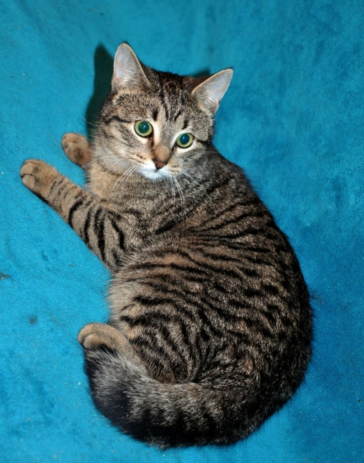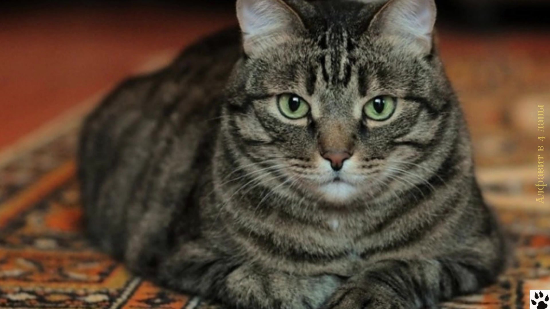 Полосатая кошка с зелеными глазами