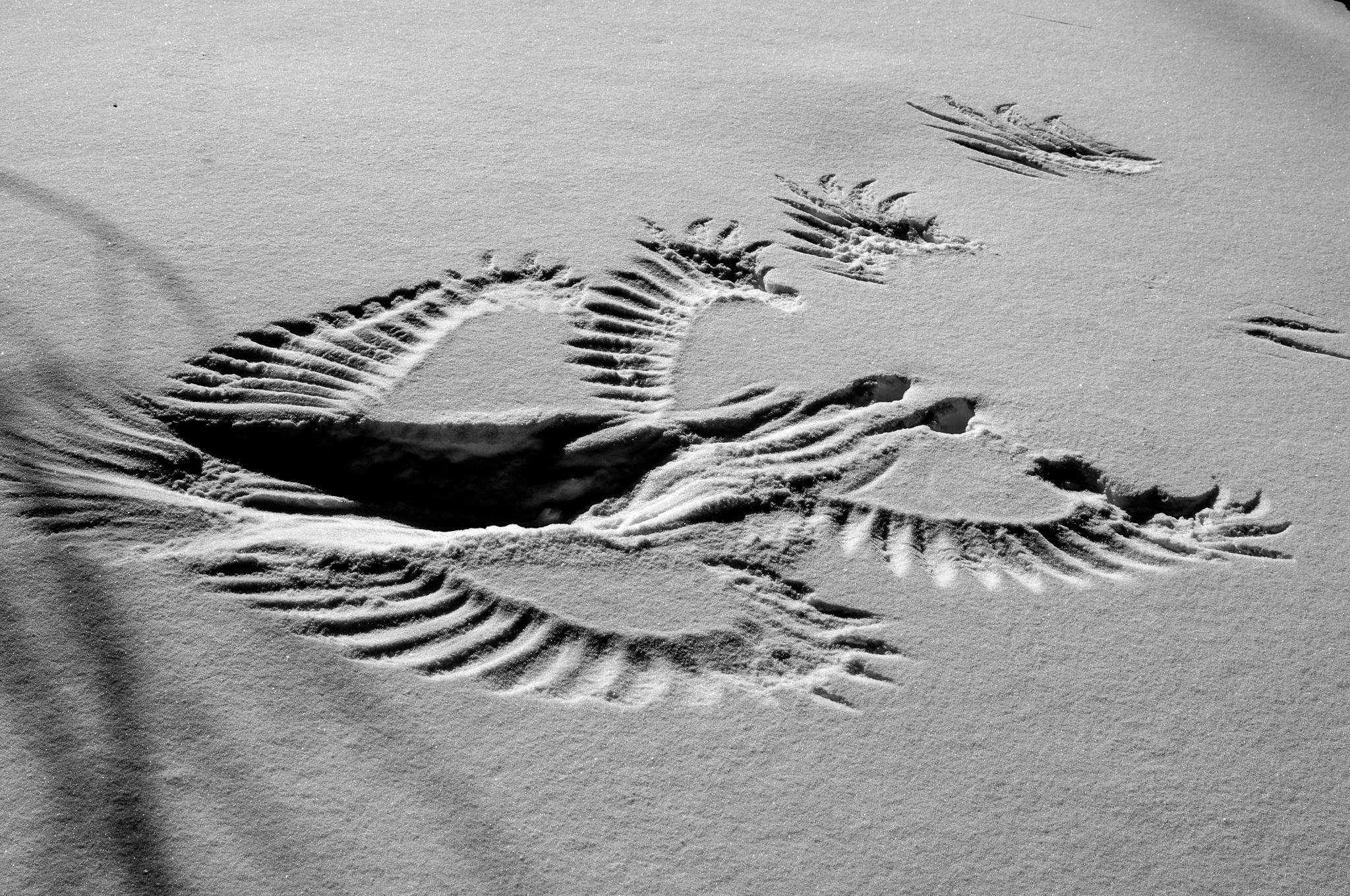 Следы голубя на снегу