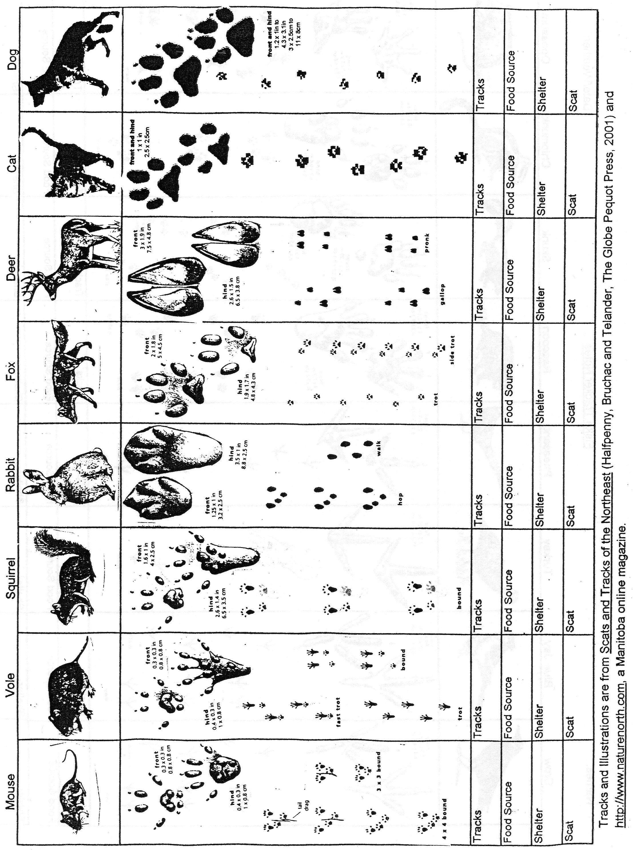 Следы животных с подписями