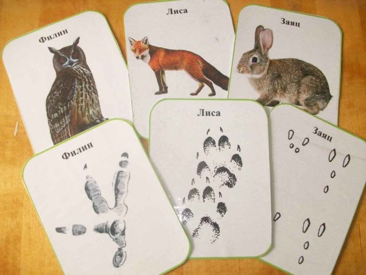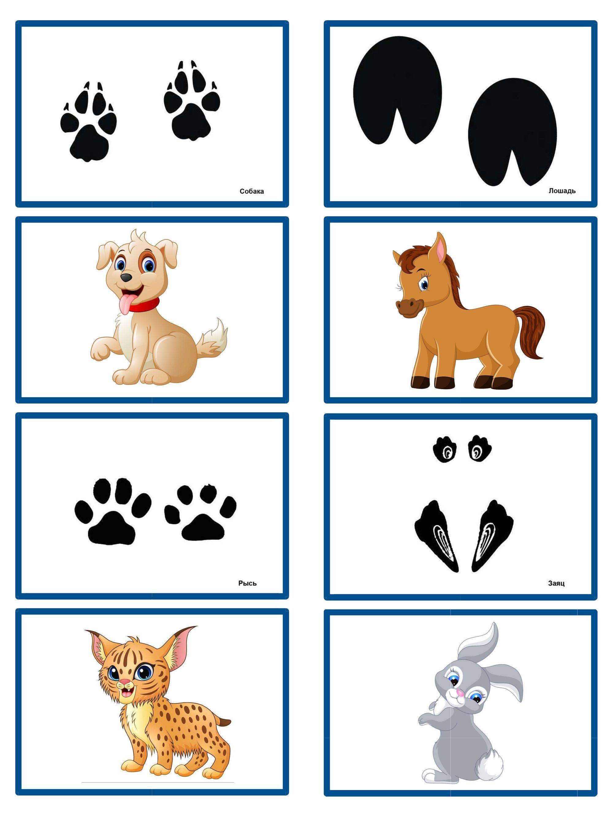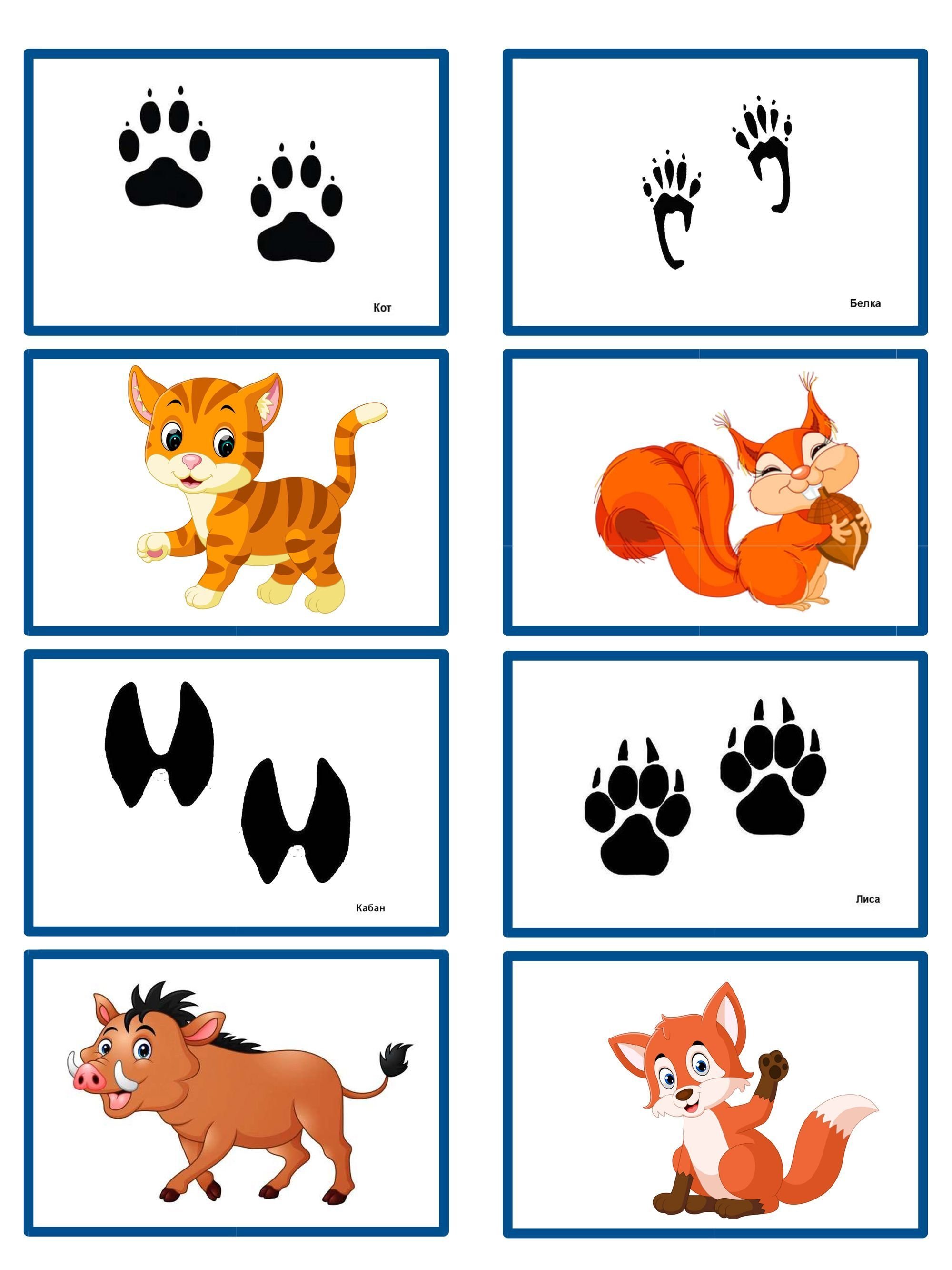 Животные и их следы карточки