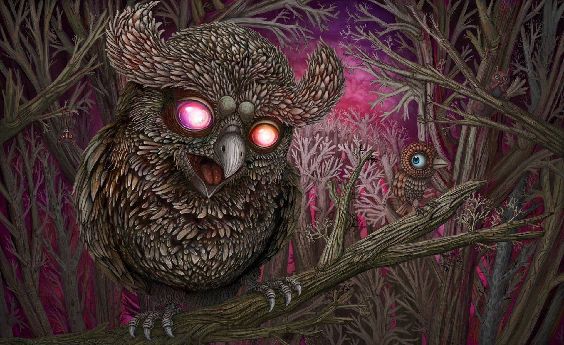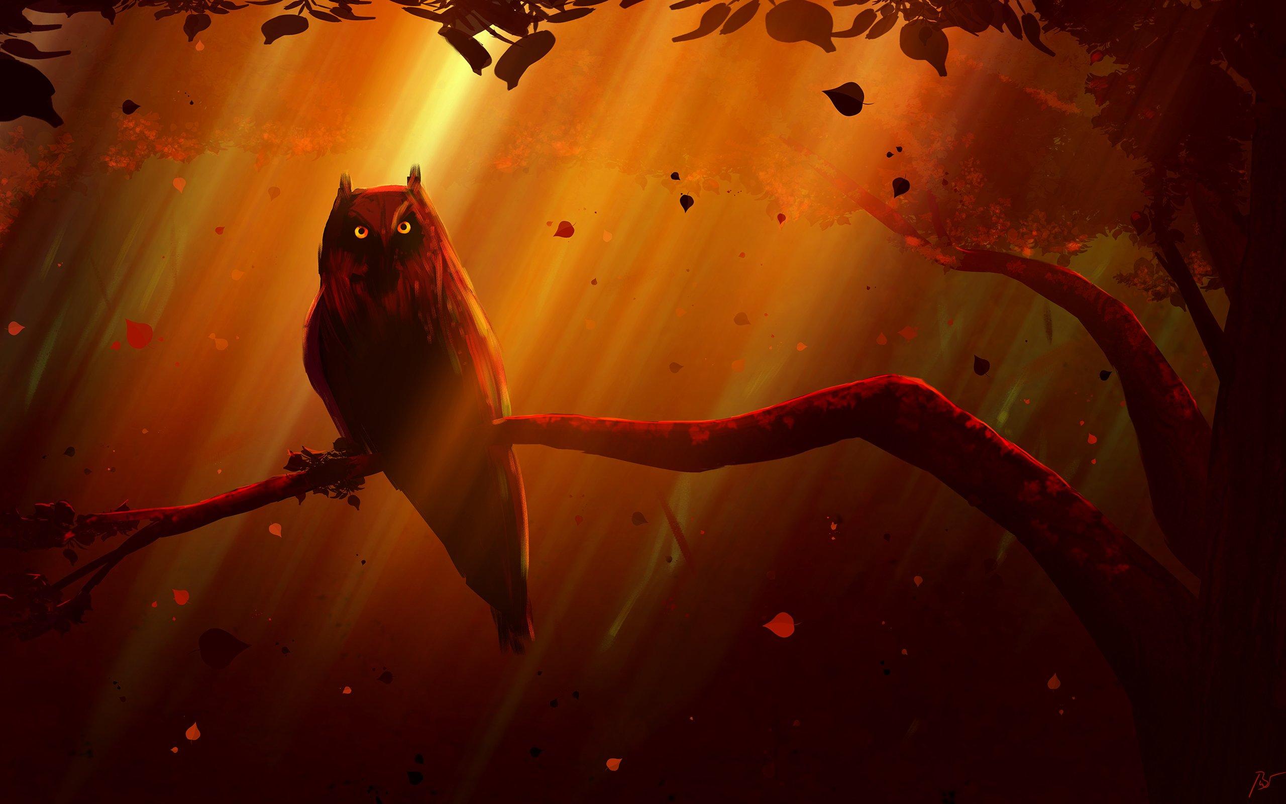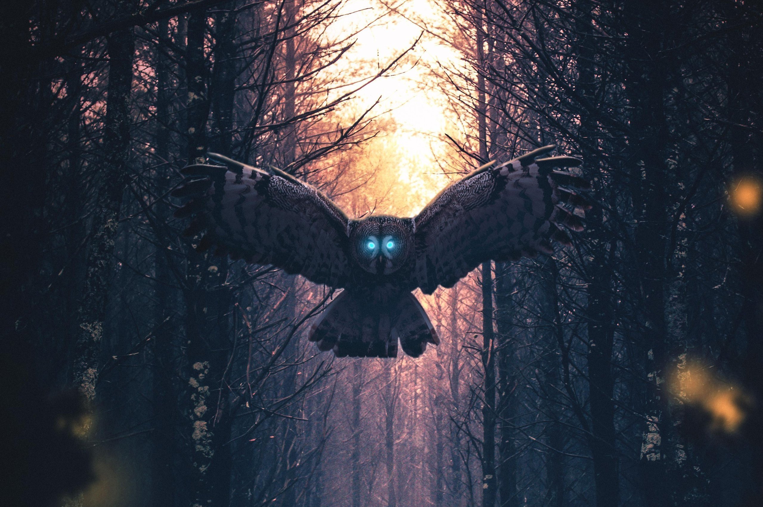 Сова со светящимися глазами