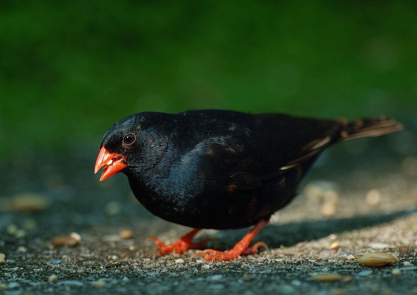 Маленькая черная птица с красным клювом