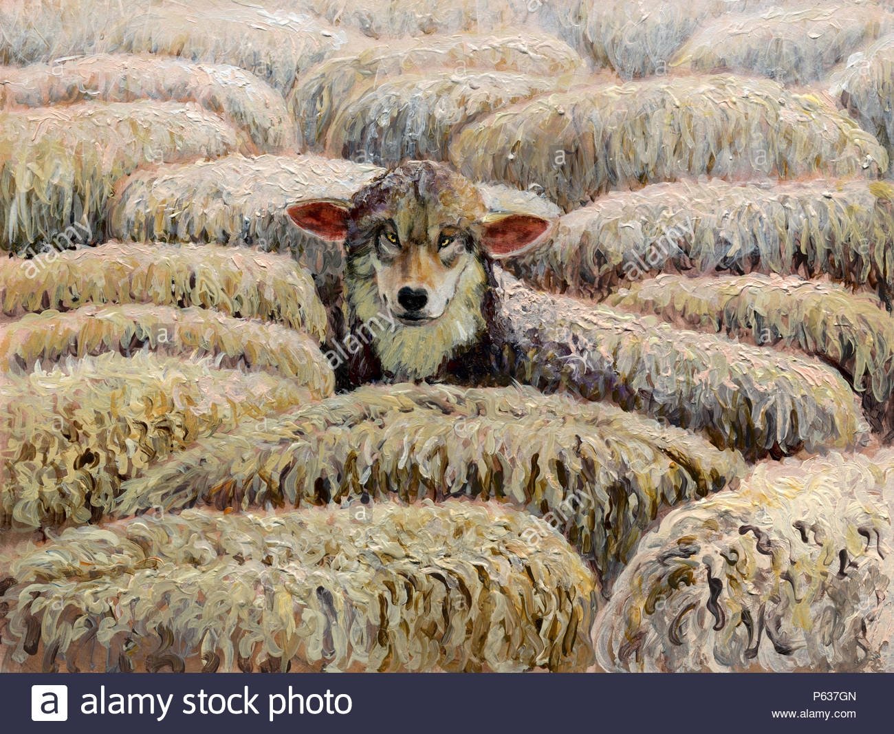 Волк в овечьей шкуре среди овец