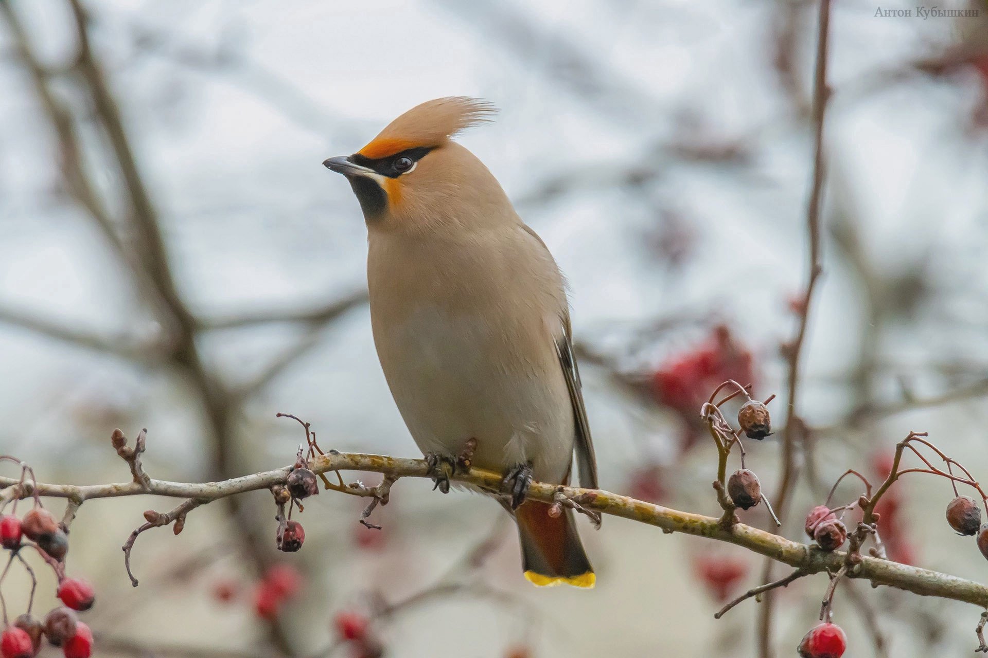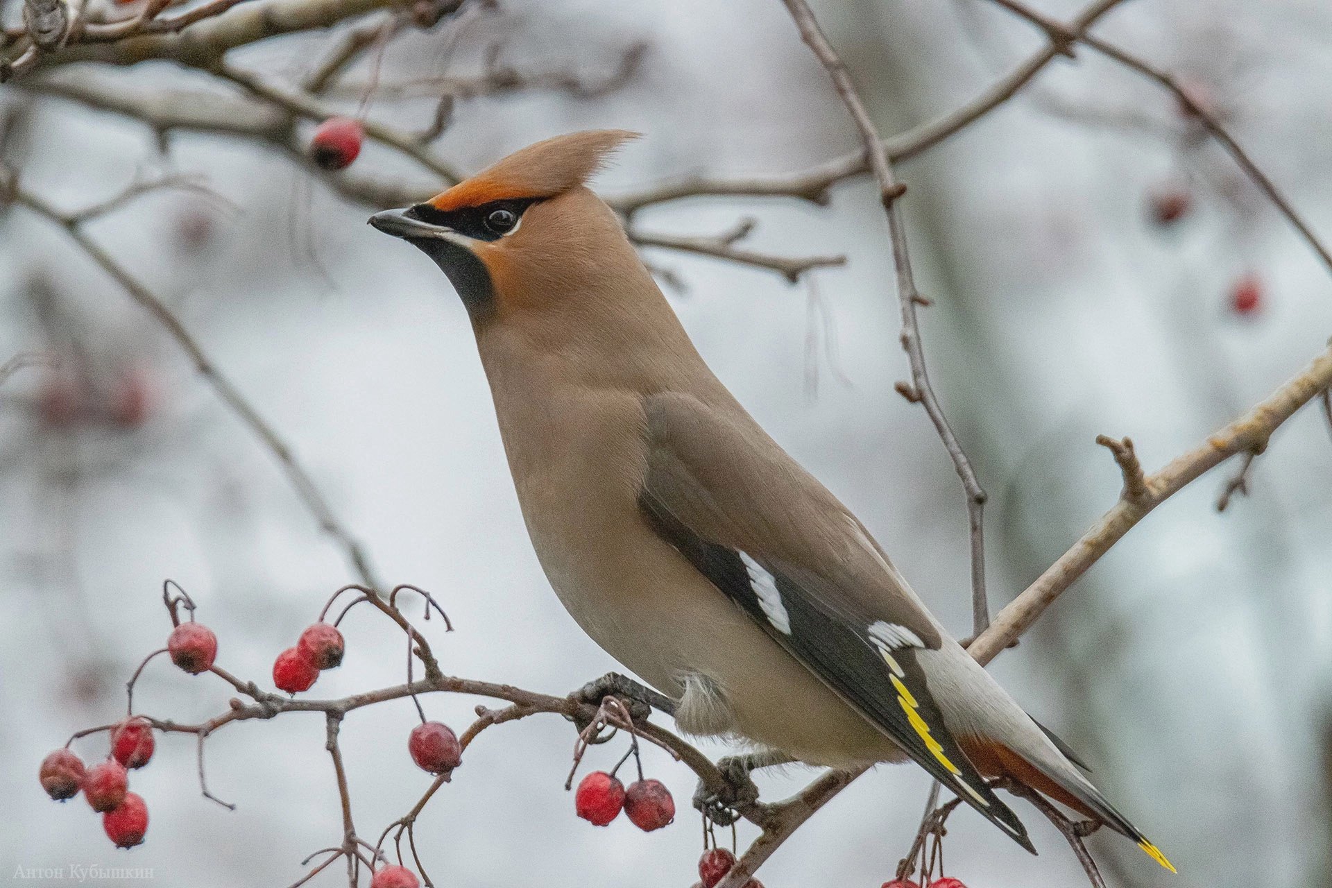 Свиристель с красным хохолком