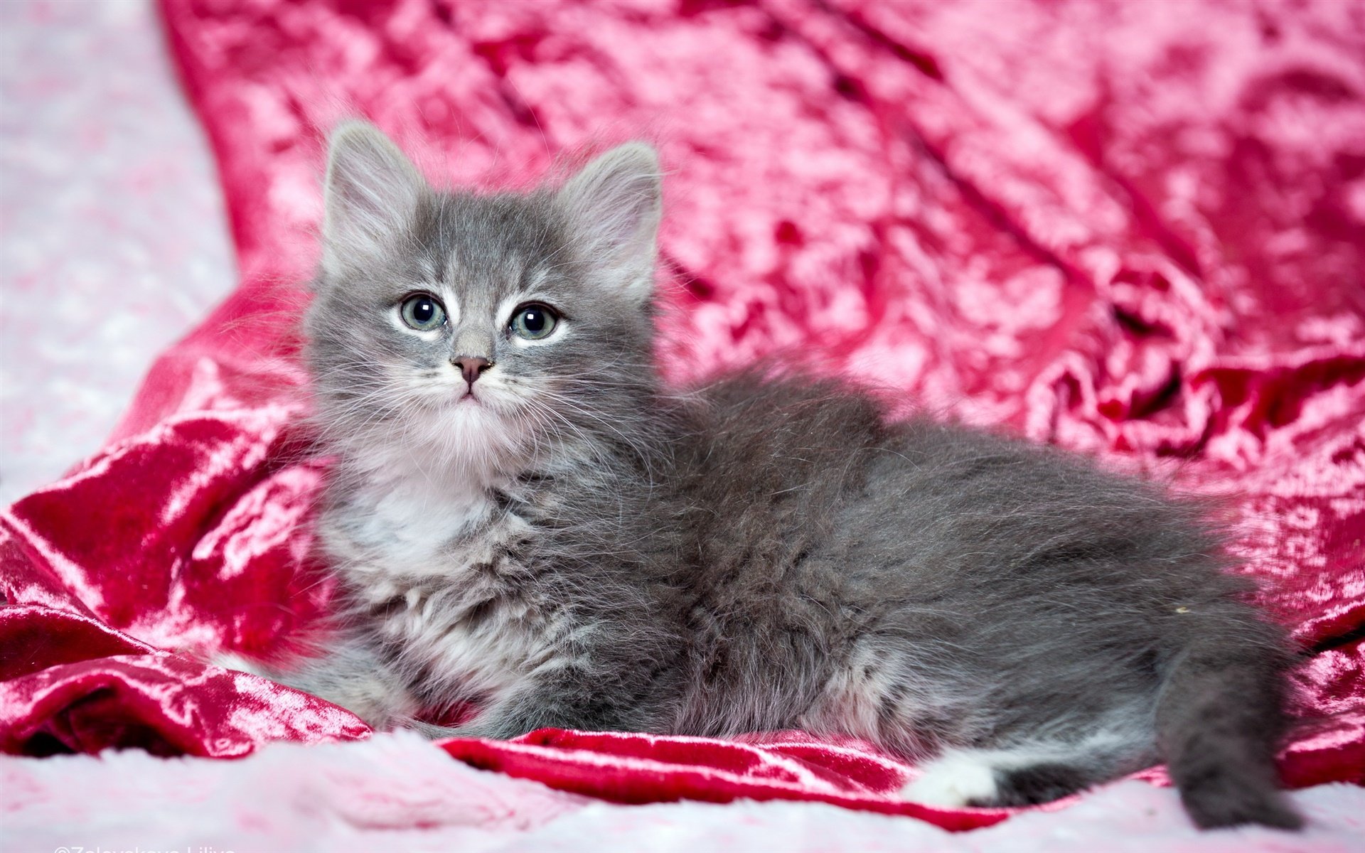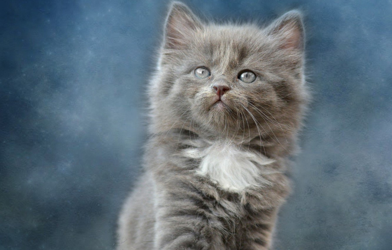 Серый пушистый котенок