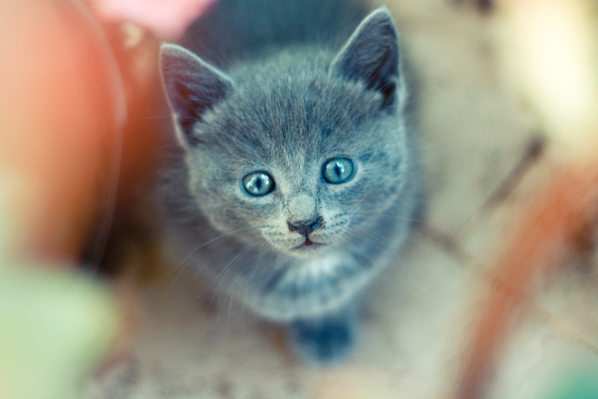 Серый котёнок с голубыми глазами