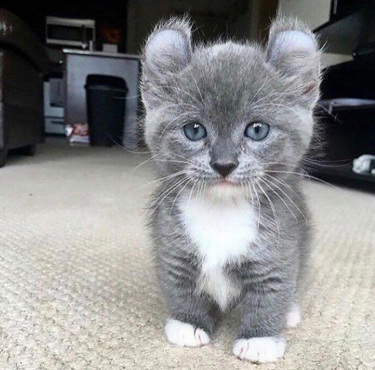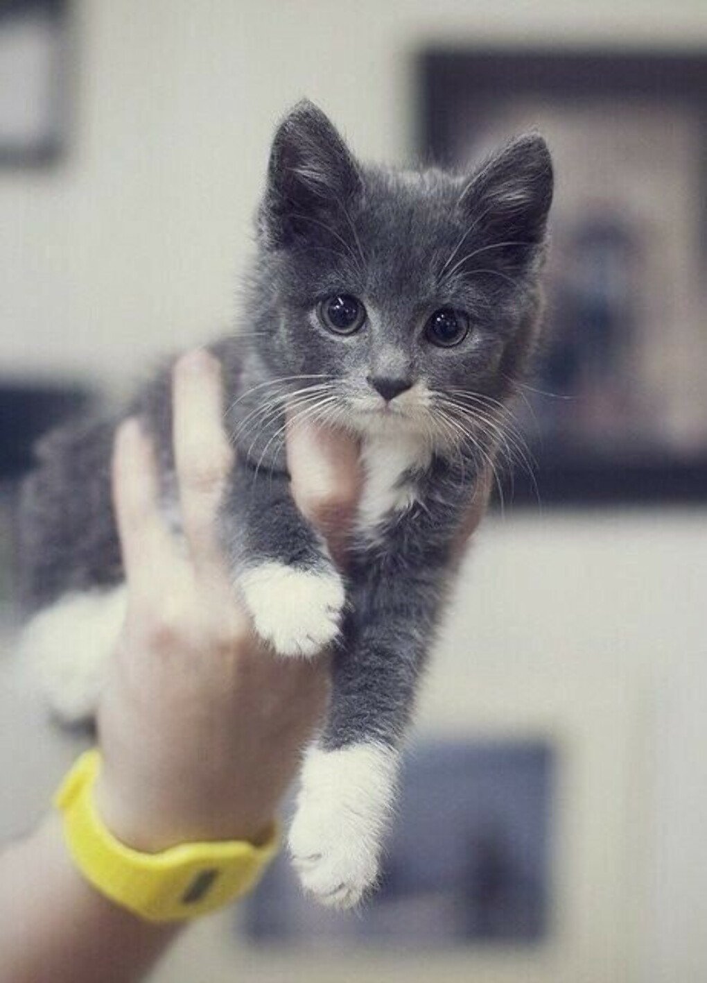Серый кот маленький с белым