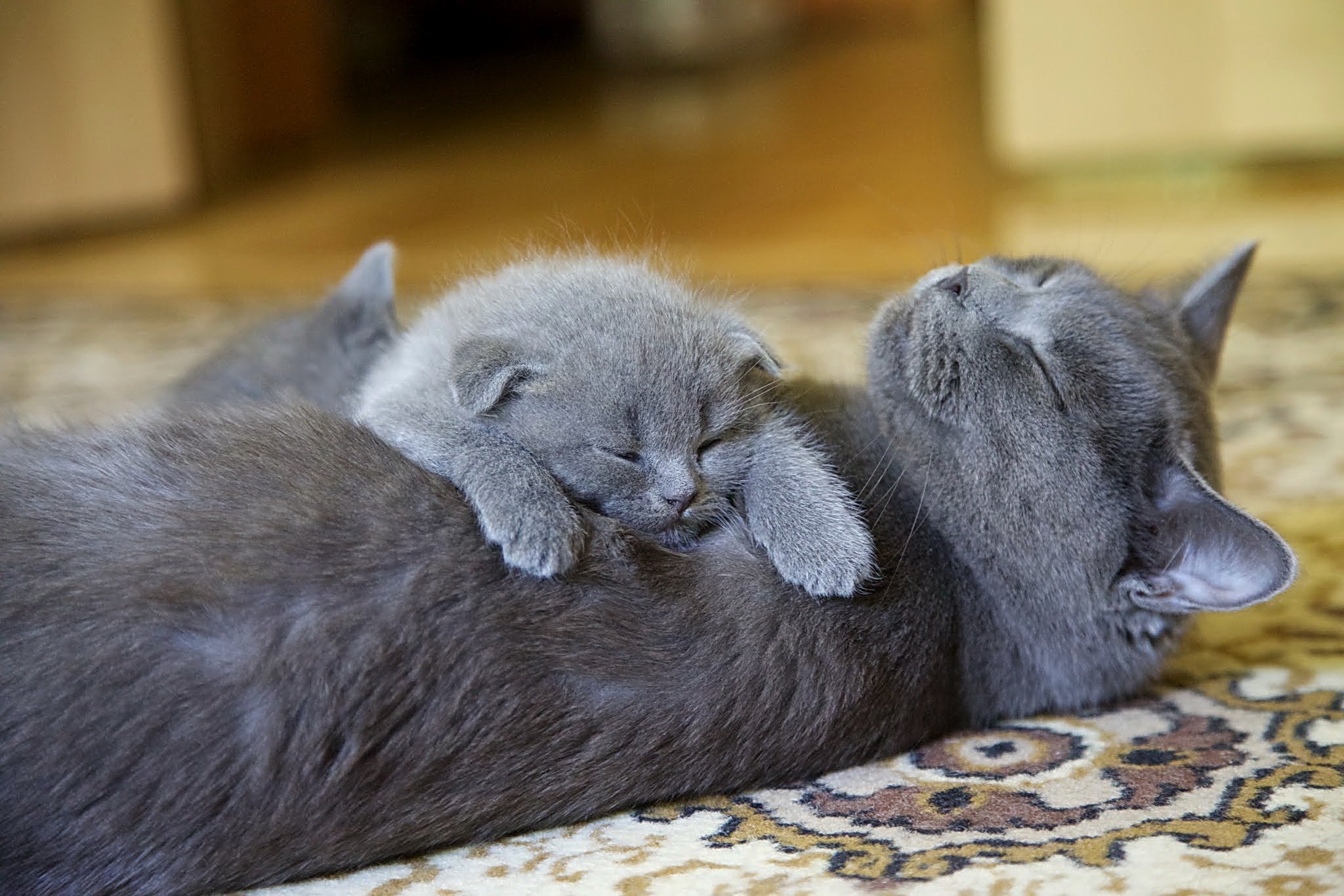 Серая кошка с котятами