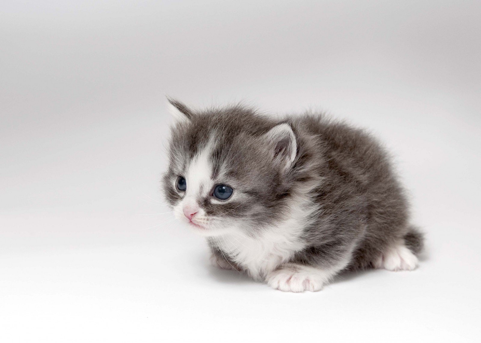 Бело серый котенок