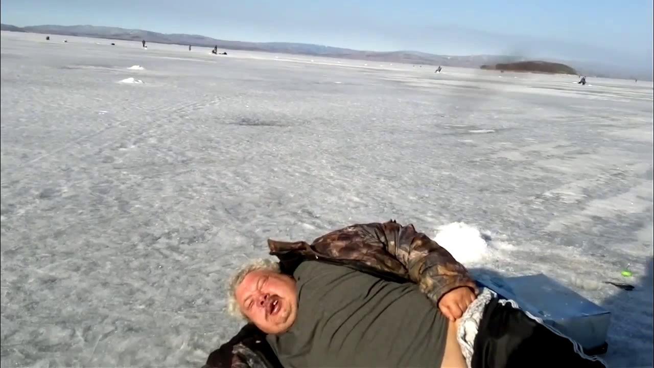 Жирный мужик лежит на льду