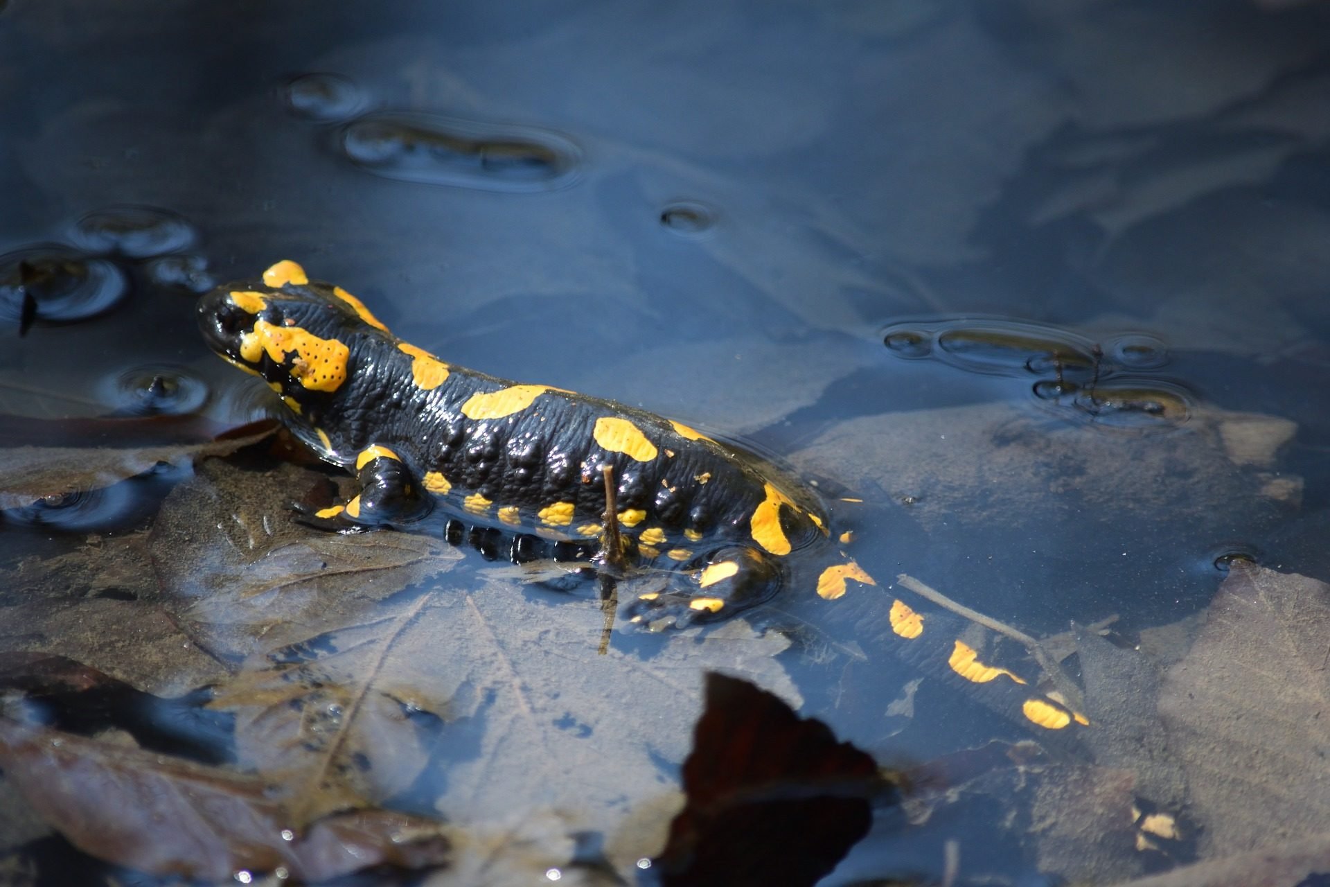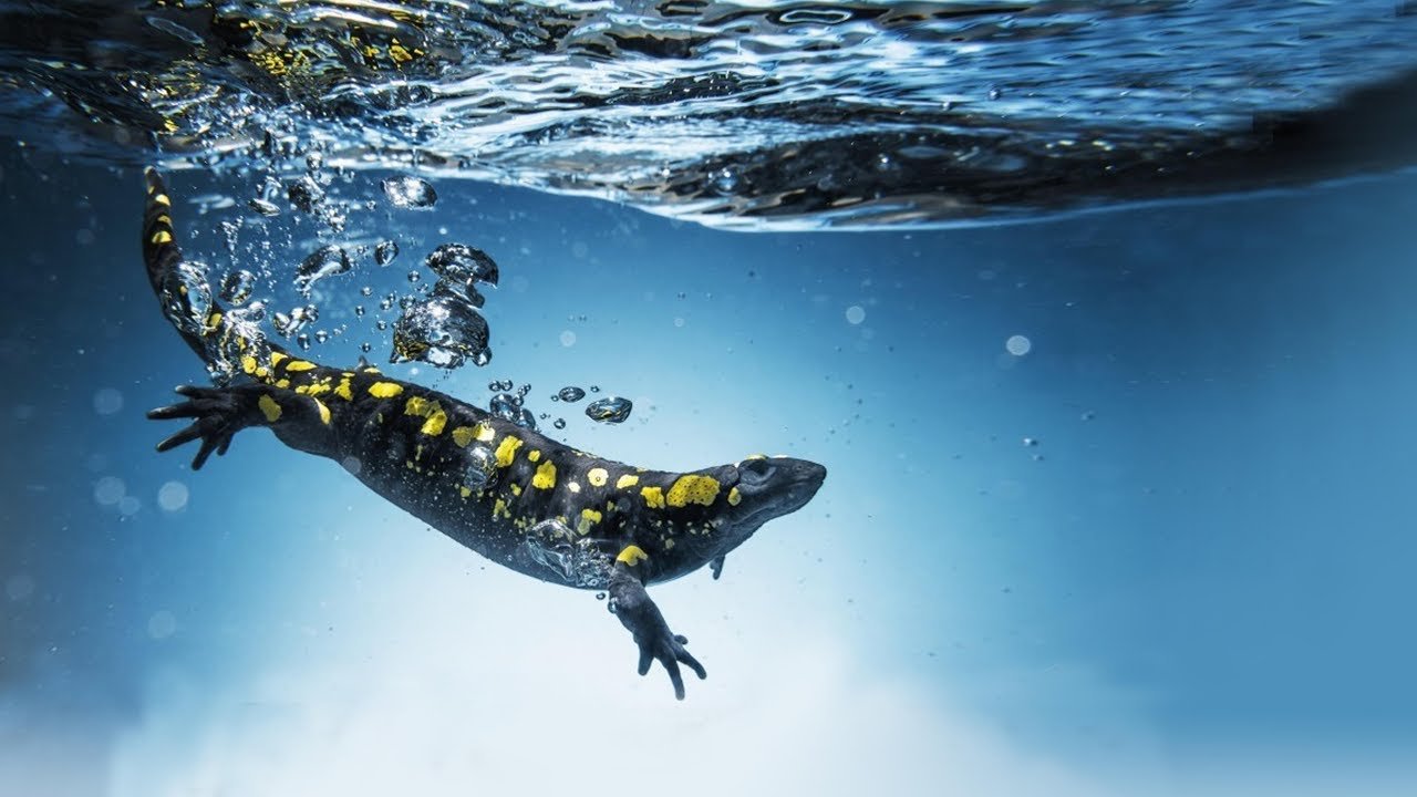 Саламандра плавает