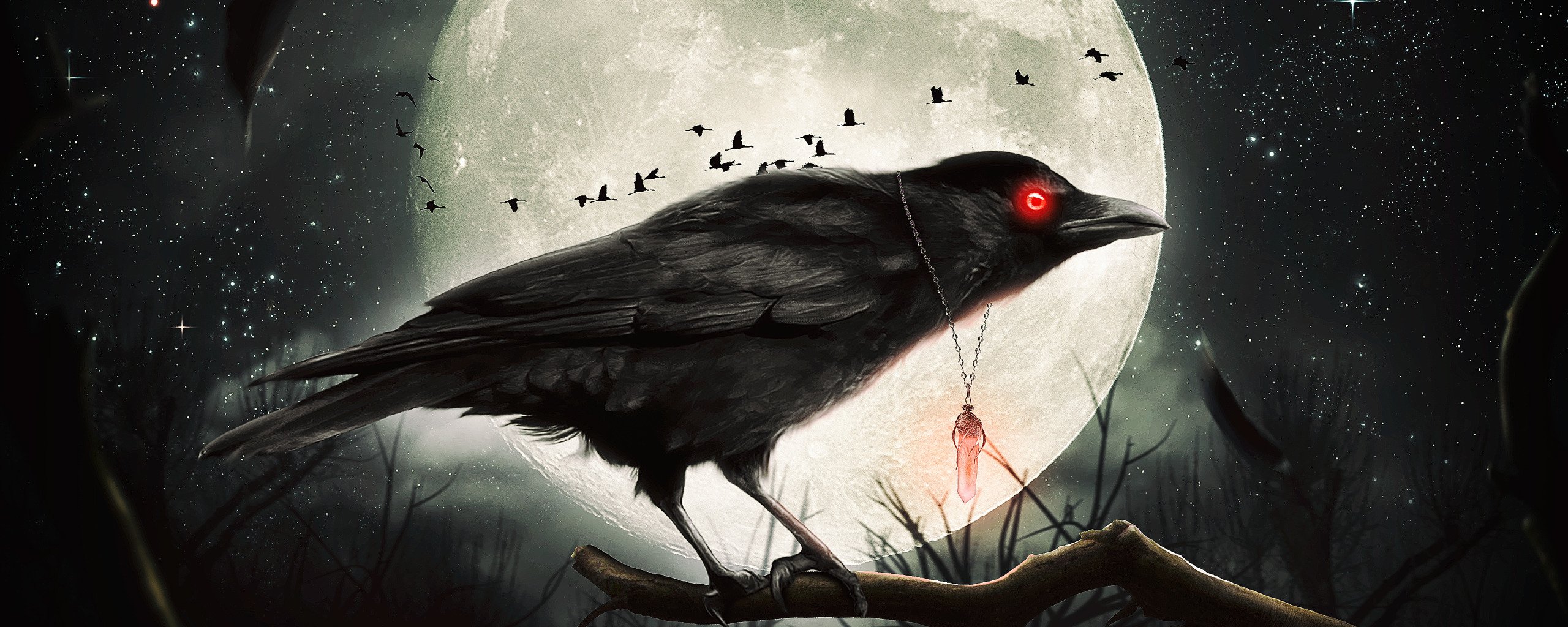Луна и ворон на ветке