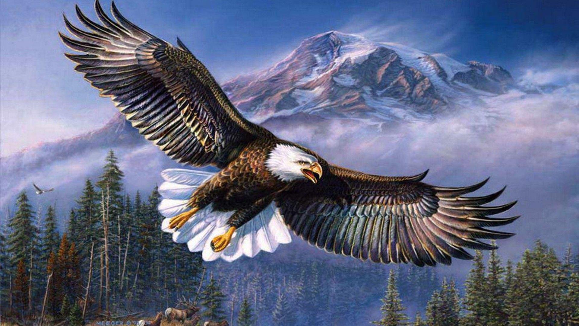 Орел на фоне гор живопись