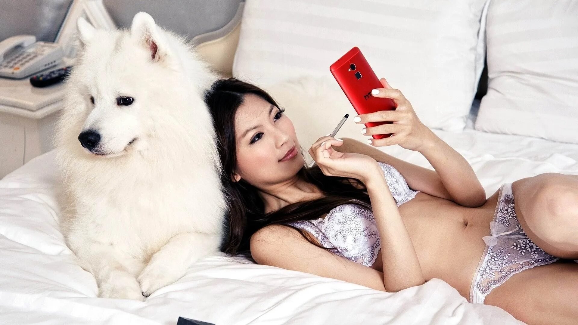 Девушка в белье с животными