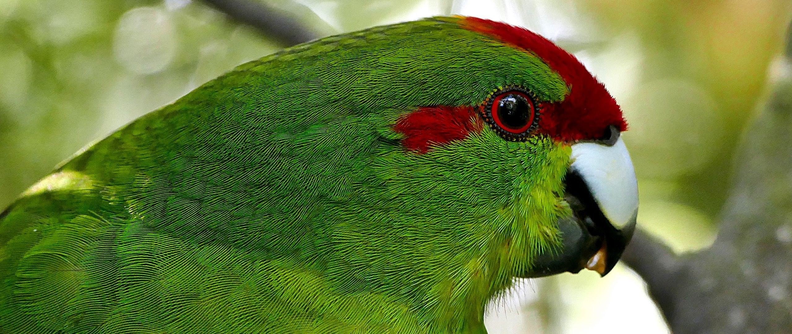 Зеленый попугай с красным хохолком
